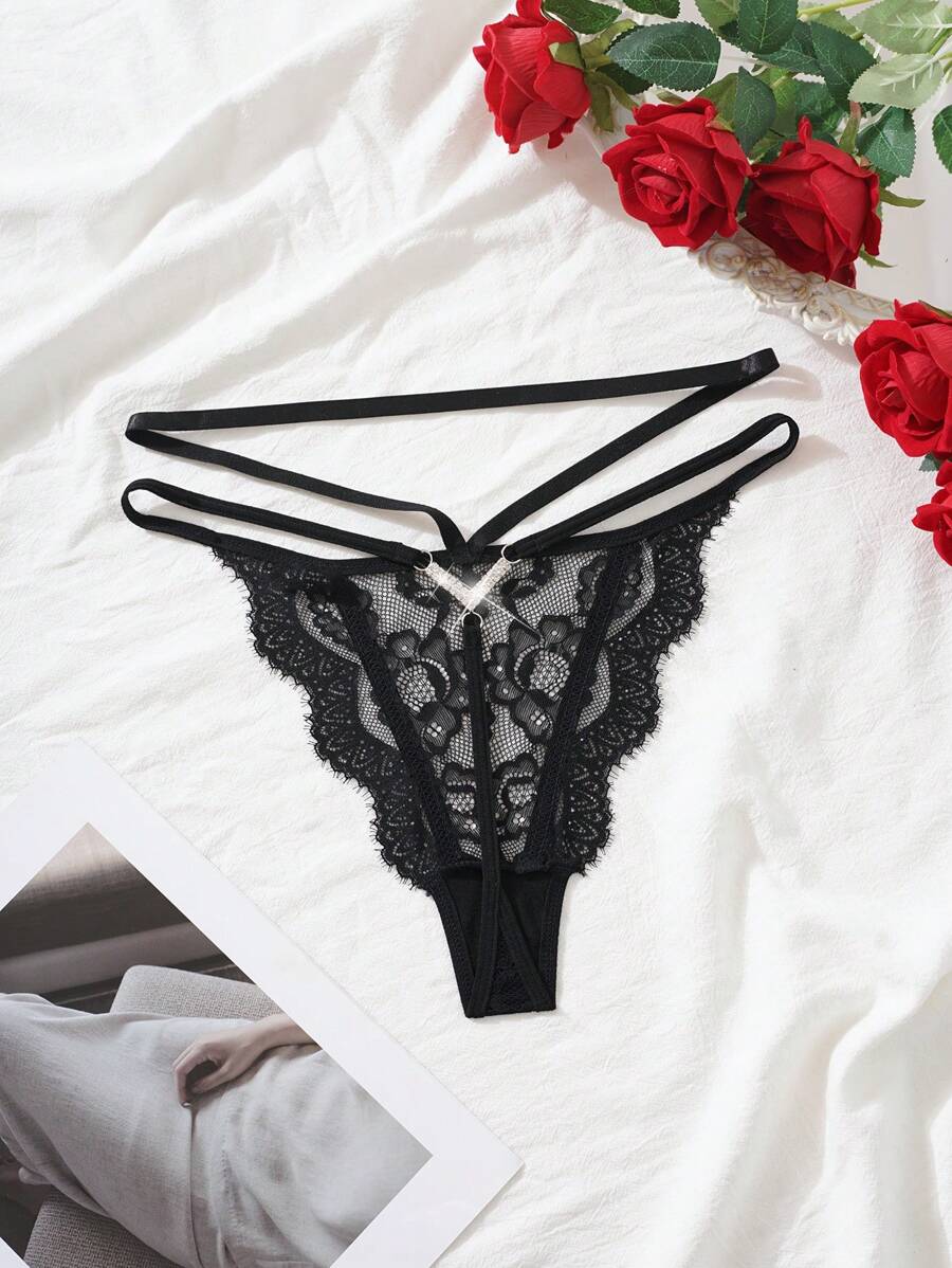 Ropa interior de encaje sexy con decoracion de cristales de metal