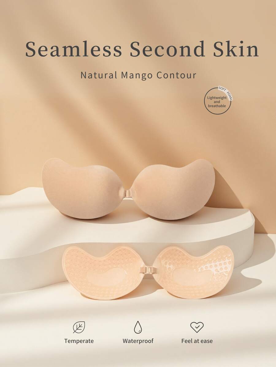 1 par de brasier adhesivo push up taza de mango: brasier invisible sin espalda y sin tirantes, pezonera autoadhesiva de silicona sin costuras para ropa interior de mujer, vestidos, lenceria de boda de verano