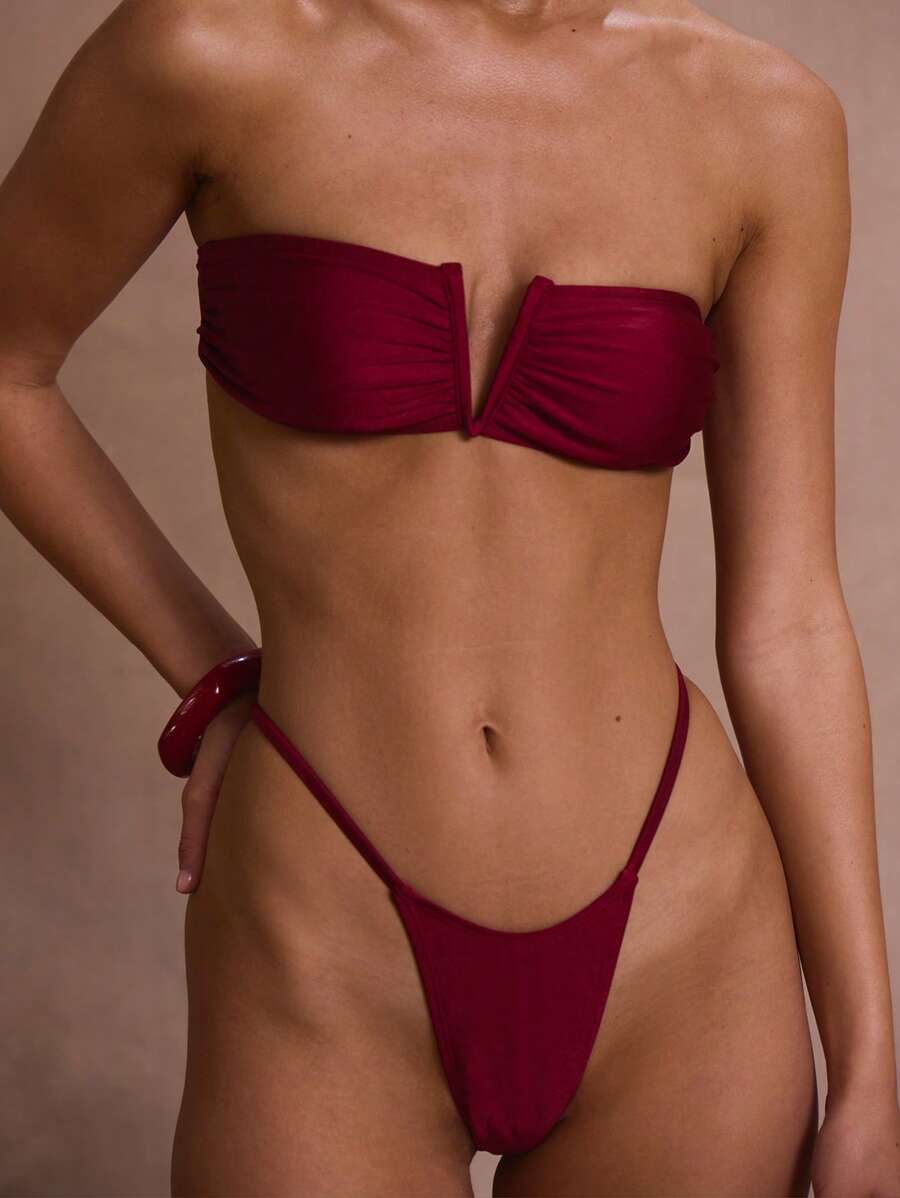 Resort tangas de bikini para mujer con tiras finas y pierna alta, para verano, vacaciones y playa