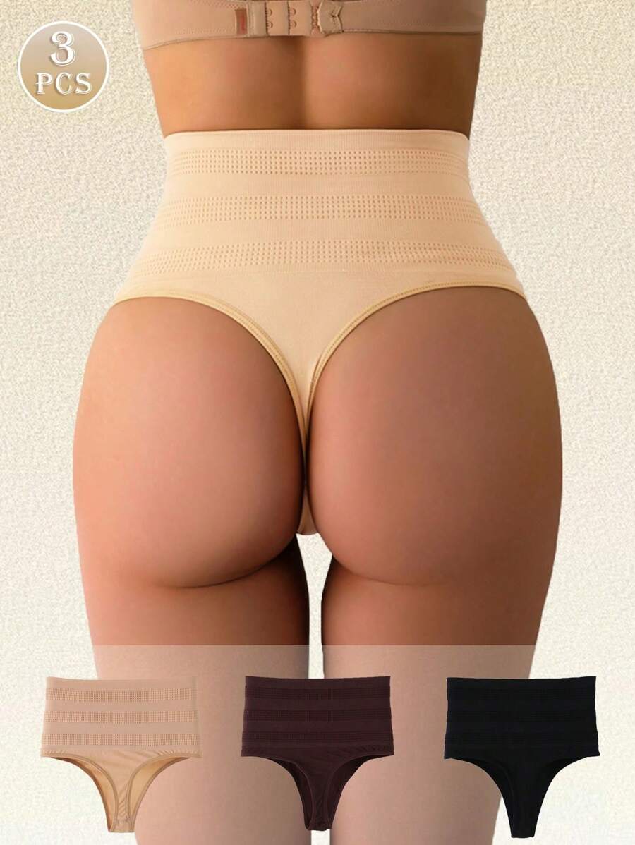 3 piezas bragas tipo tanga sin costuras con cintura alta adelgazante para mujeres, sexy tanga invisible de talle alto