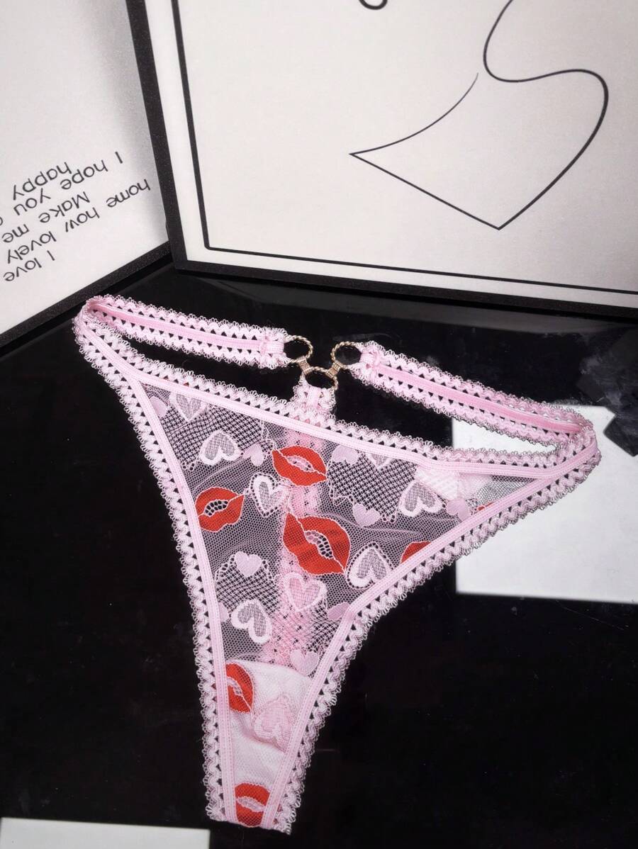 1 pieza tanga de encaje sexy con estampado de labios para mujer
