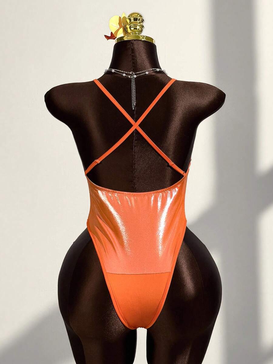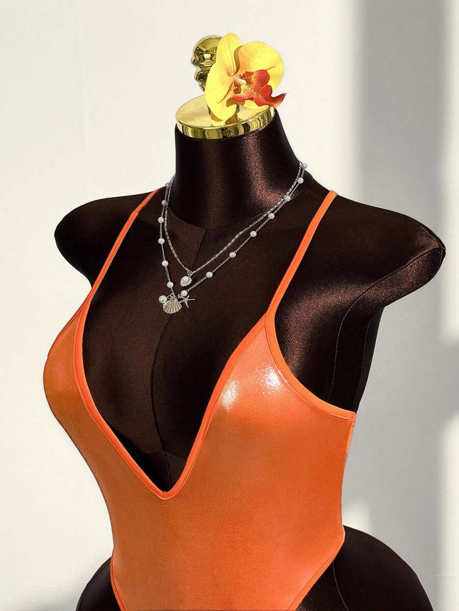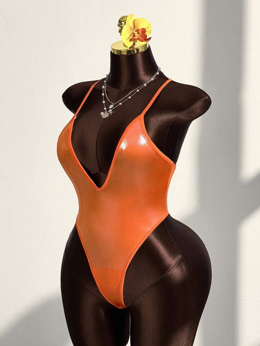 Amplova body de mujer talla grande con recubrimiento de metal, estilo vacacional
