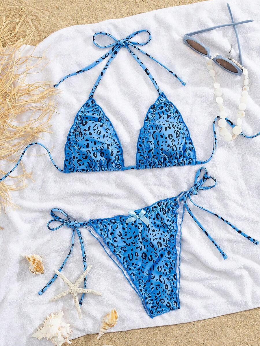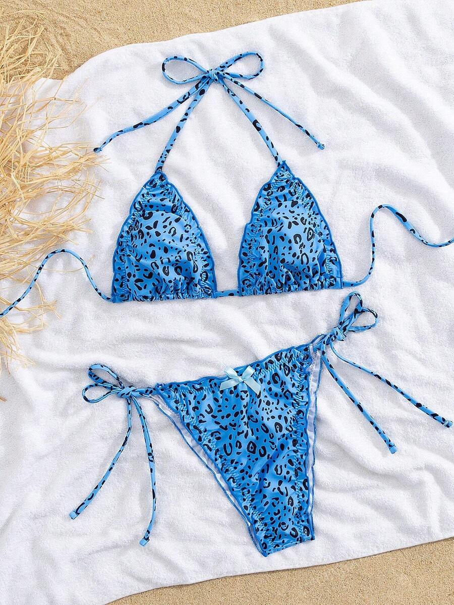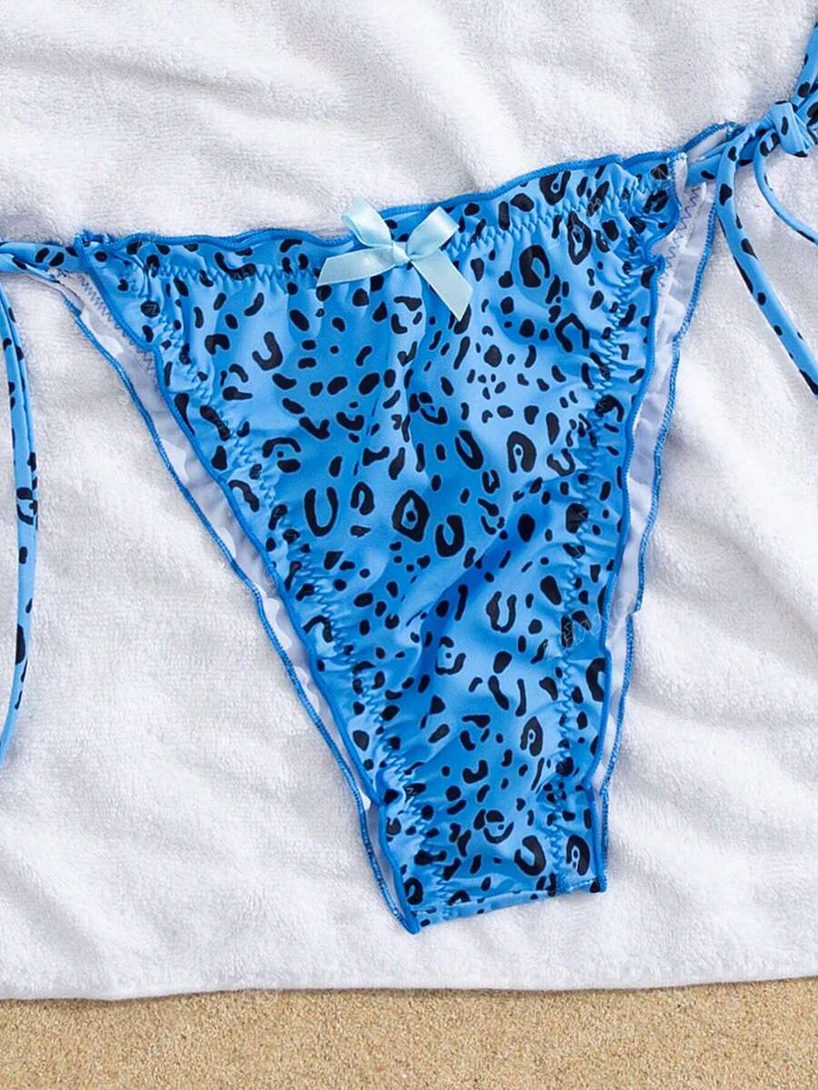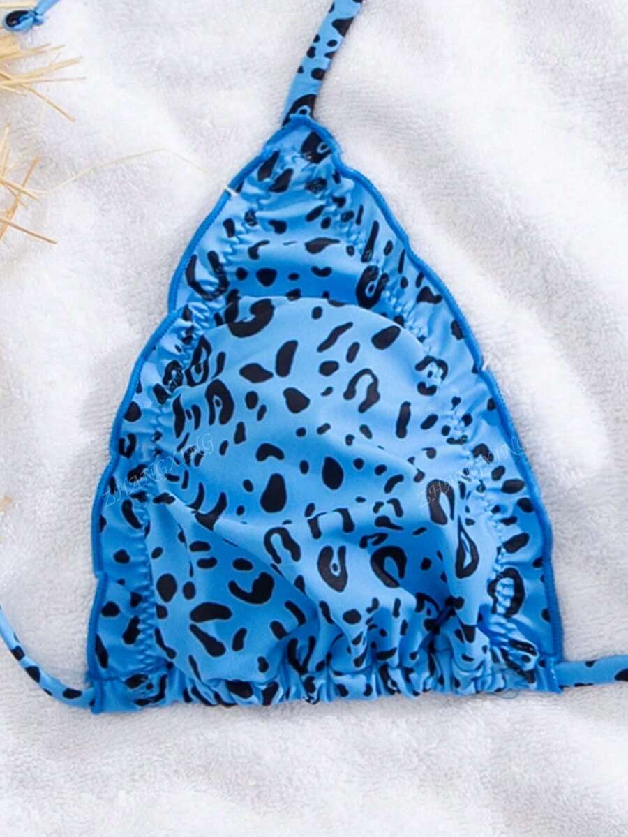 2 piezas traje de bano de mujer elegante y sexy con volantes en estampado de leopardo