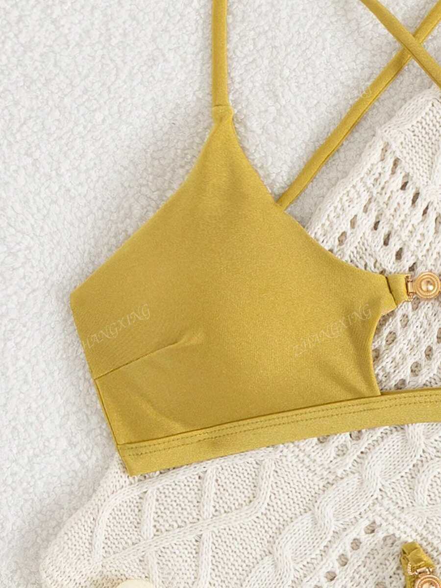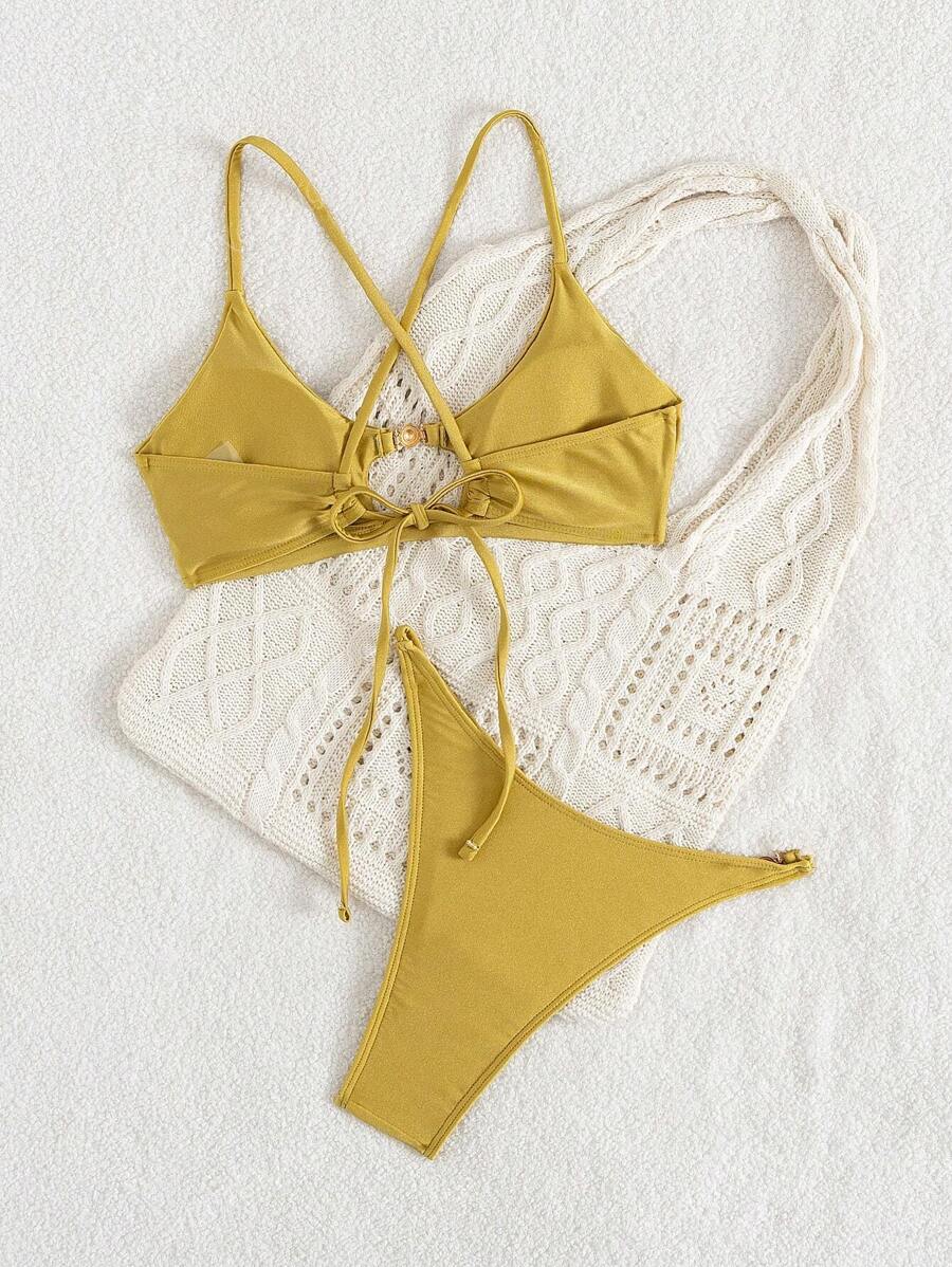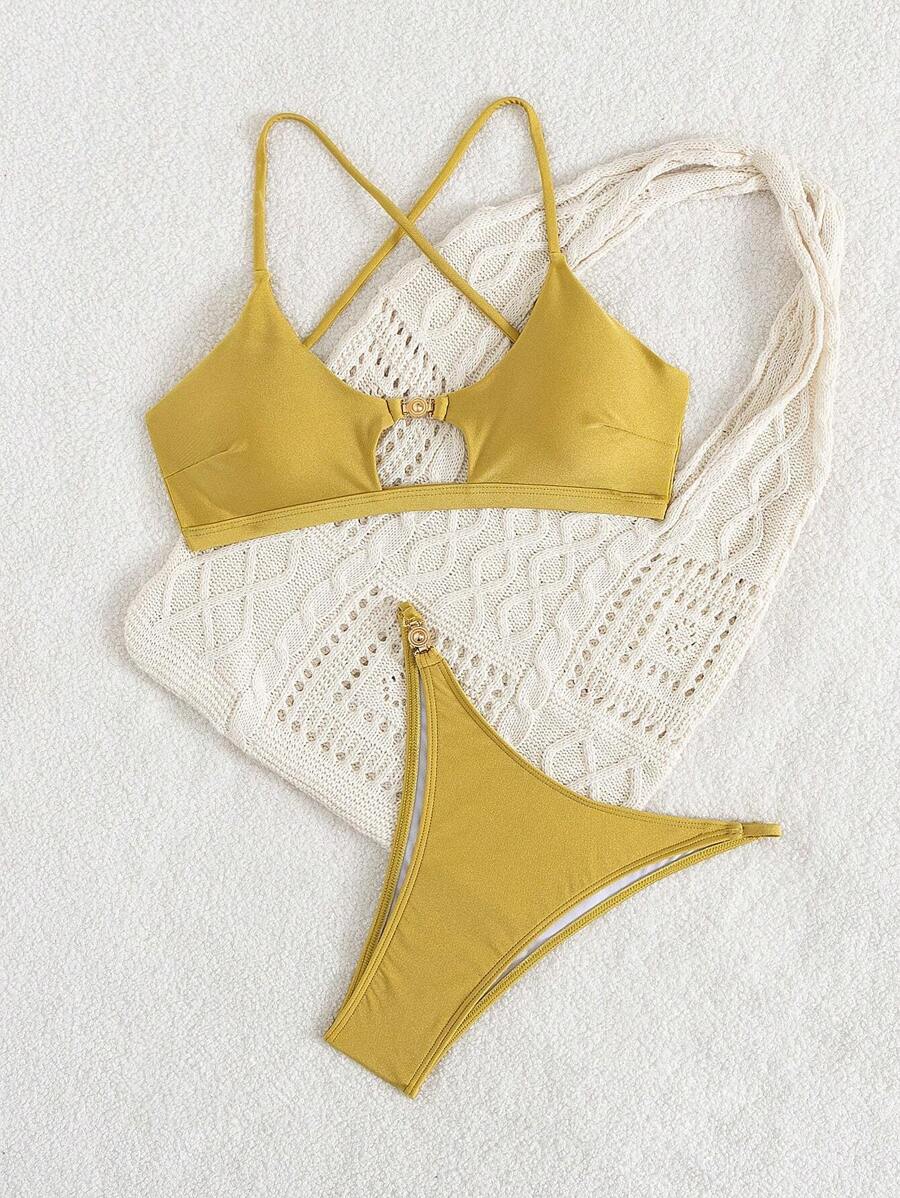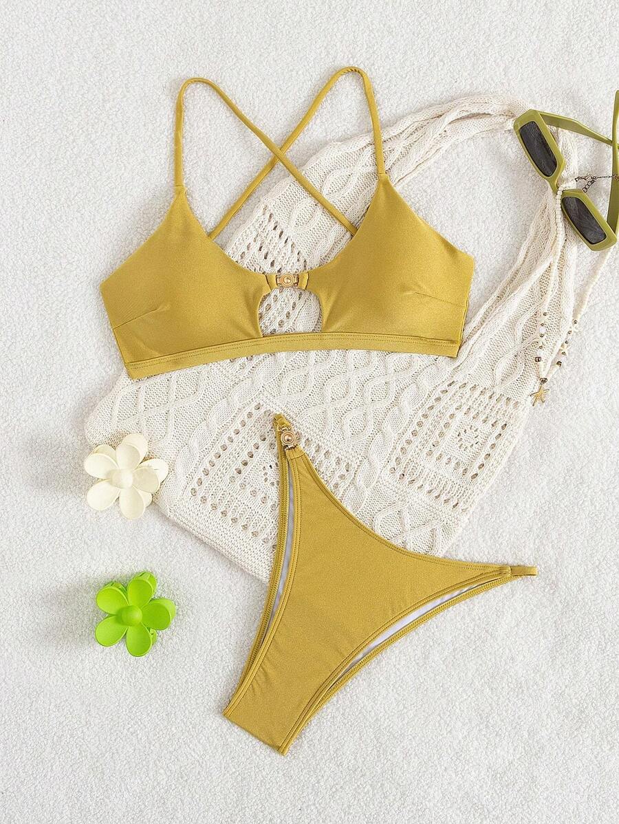 2 piezas traje de bano de bikini de mujer elegante y sexy con cortes, ideal para vacaciones en la playa