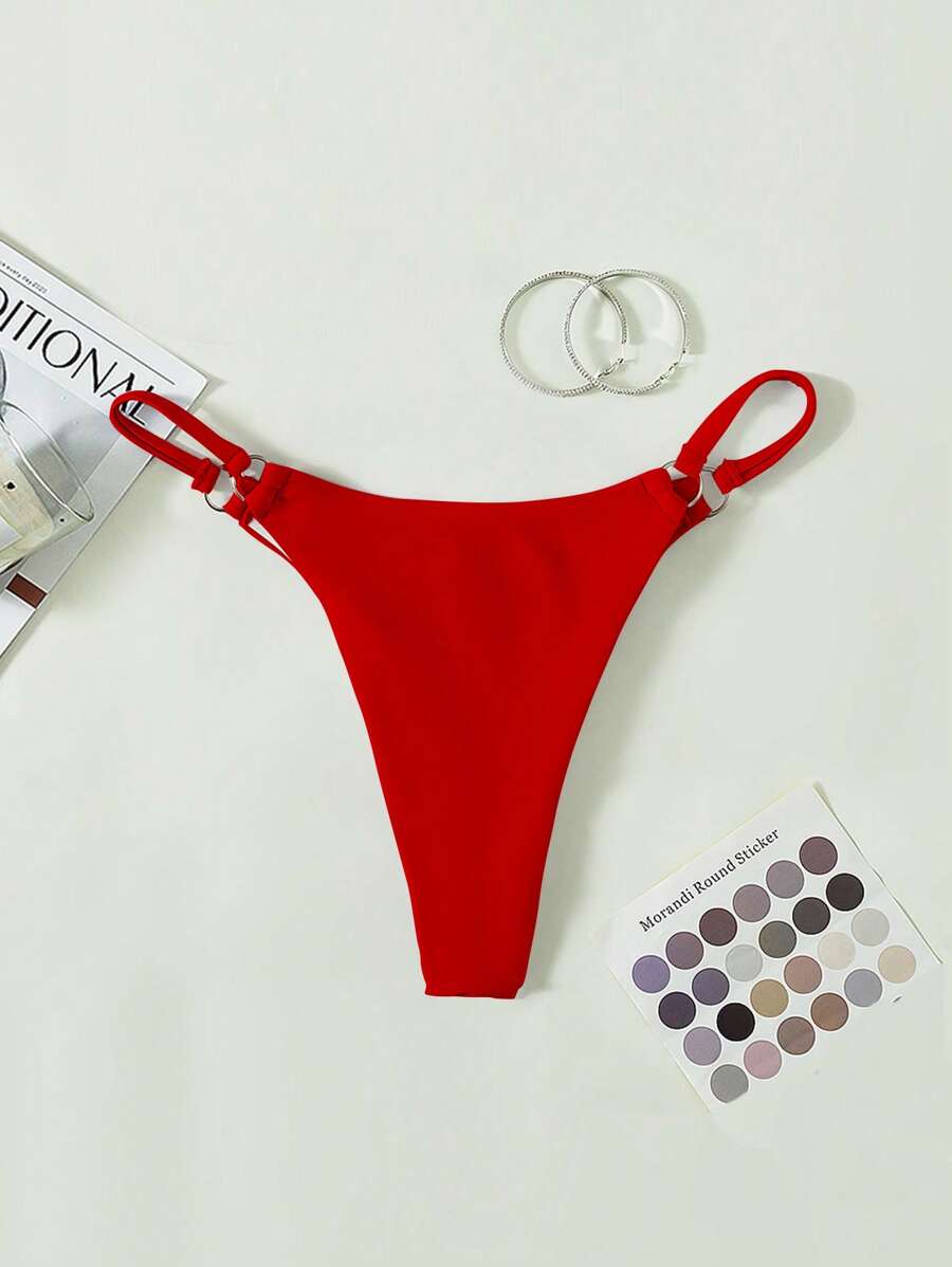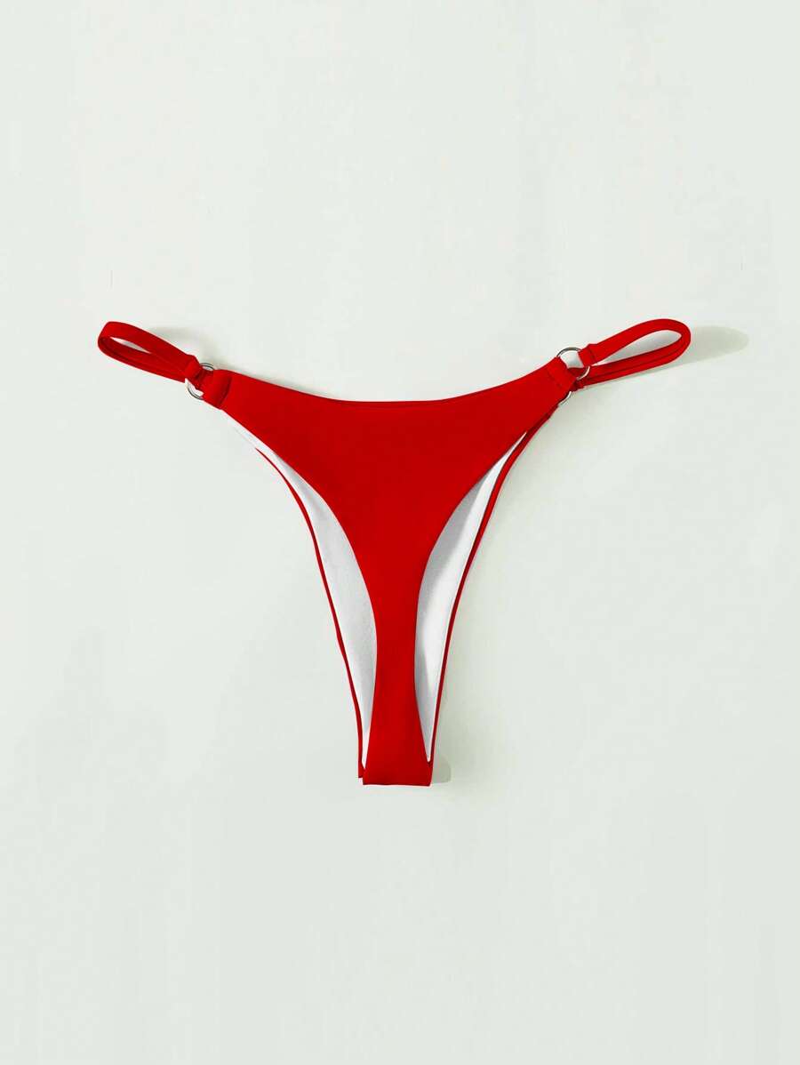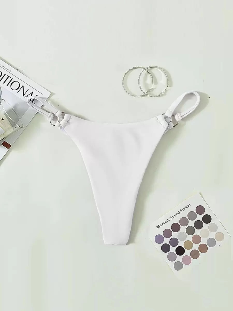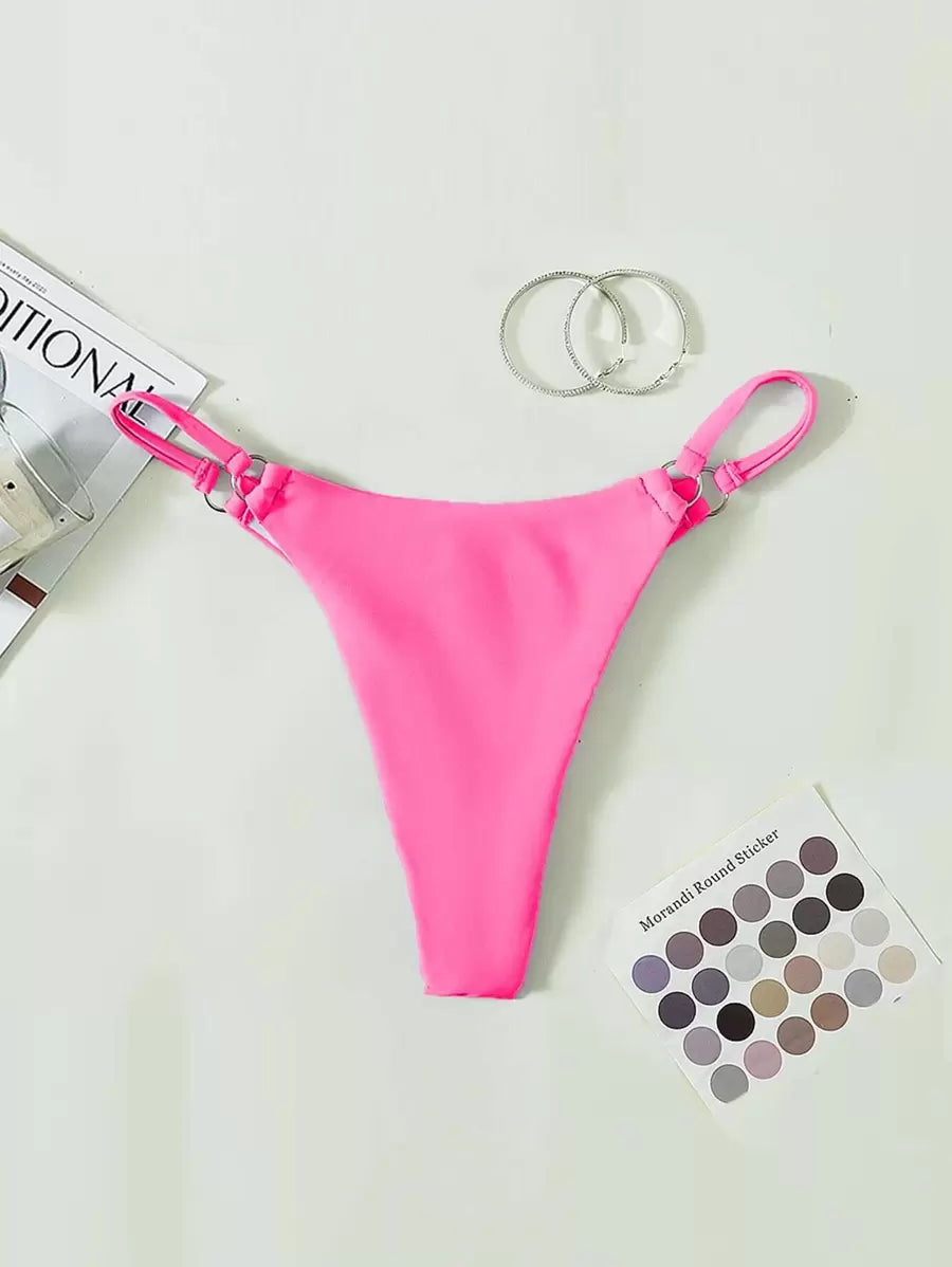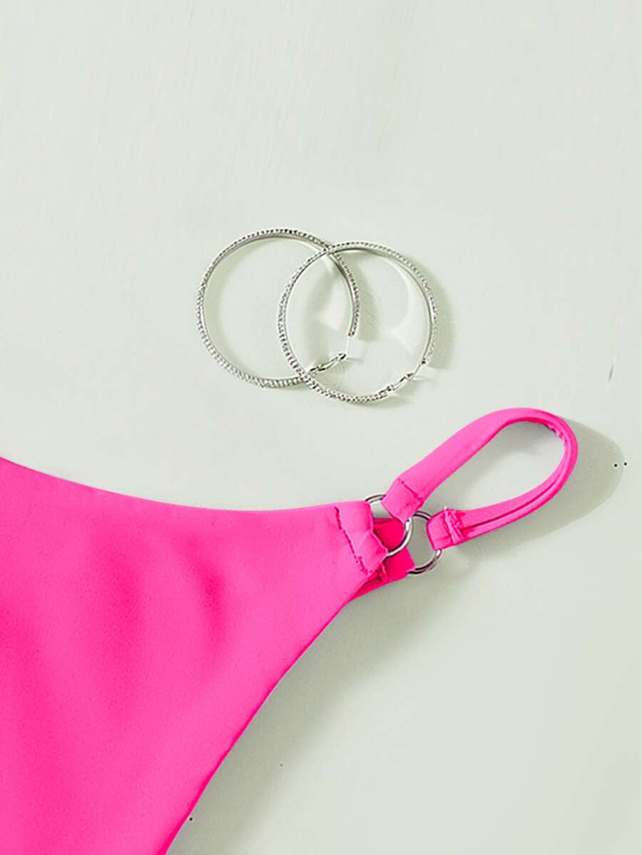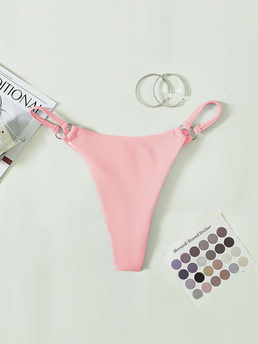 Traje de bano bikini con bottom con decoracion de anillo de unicolor