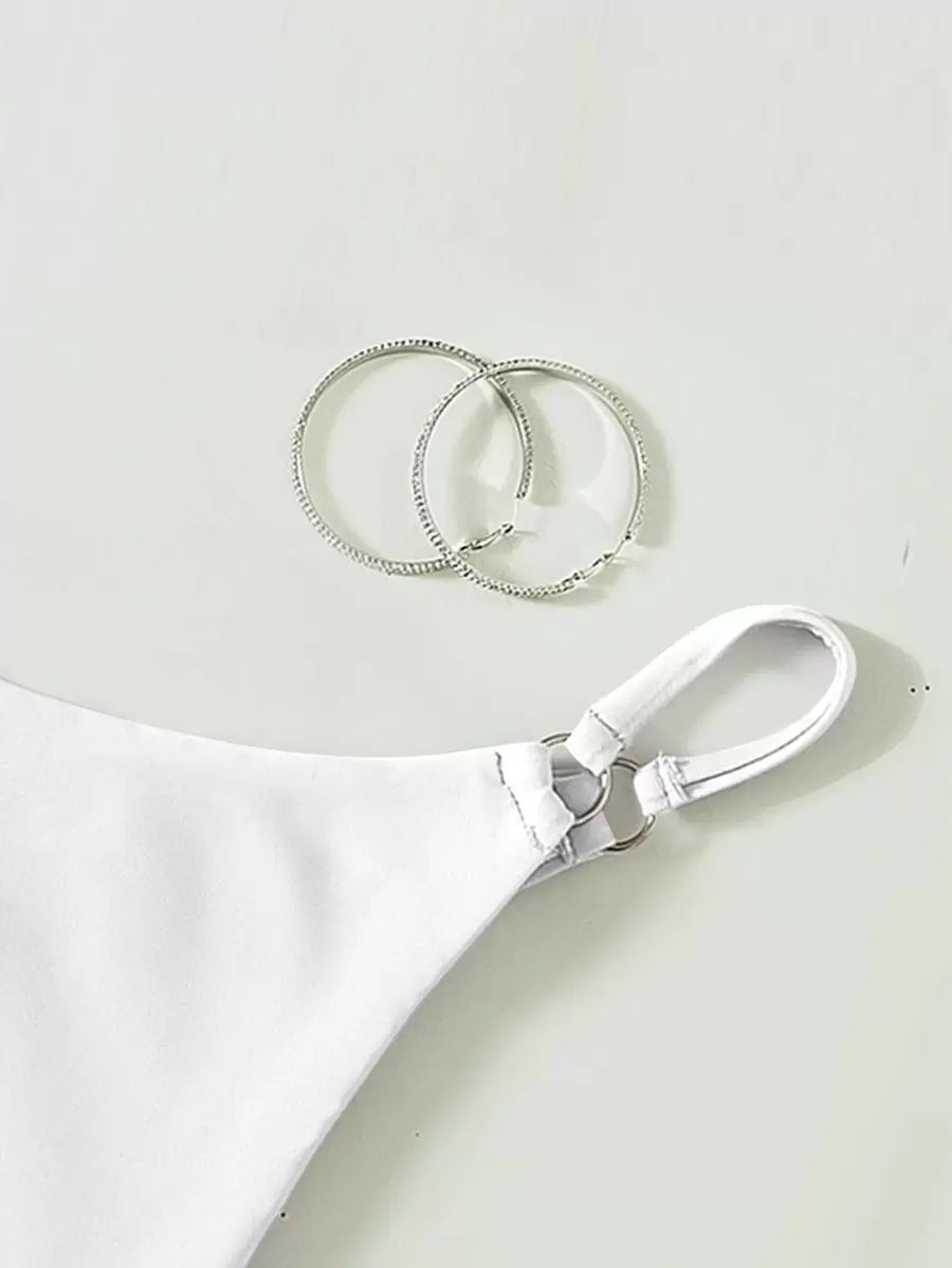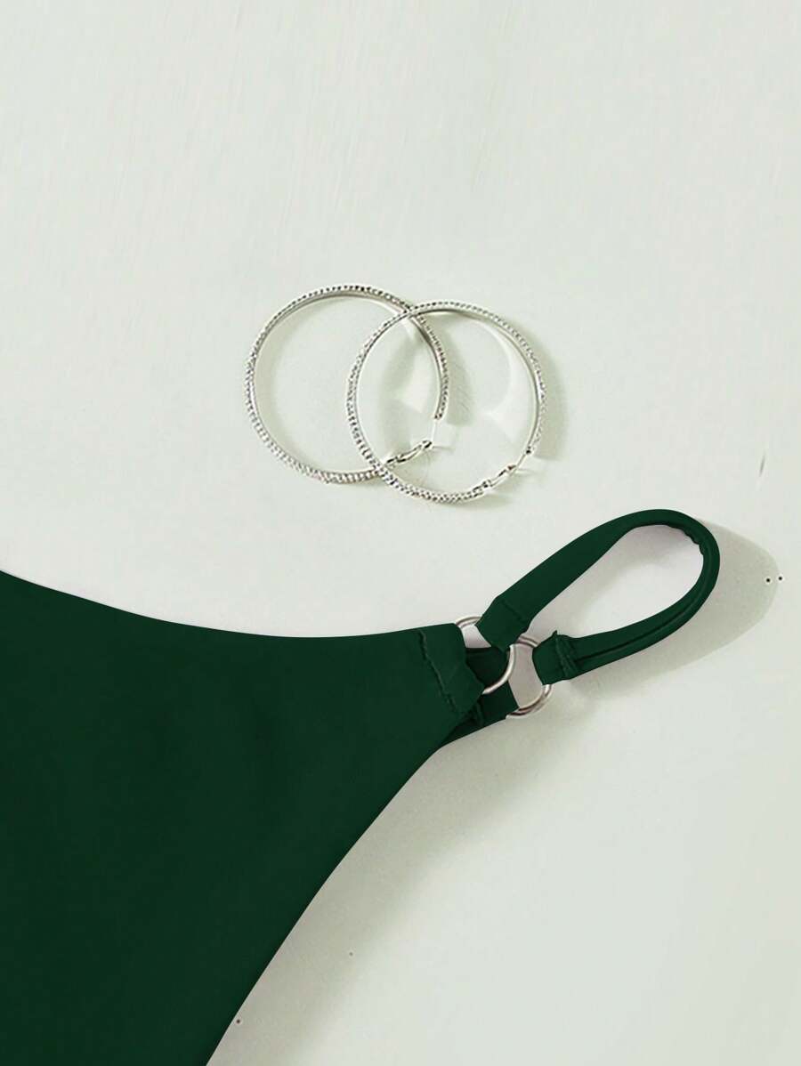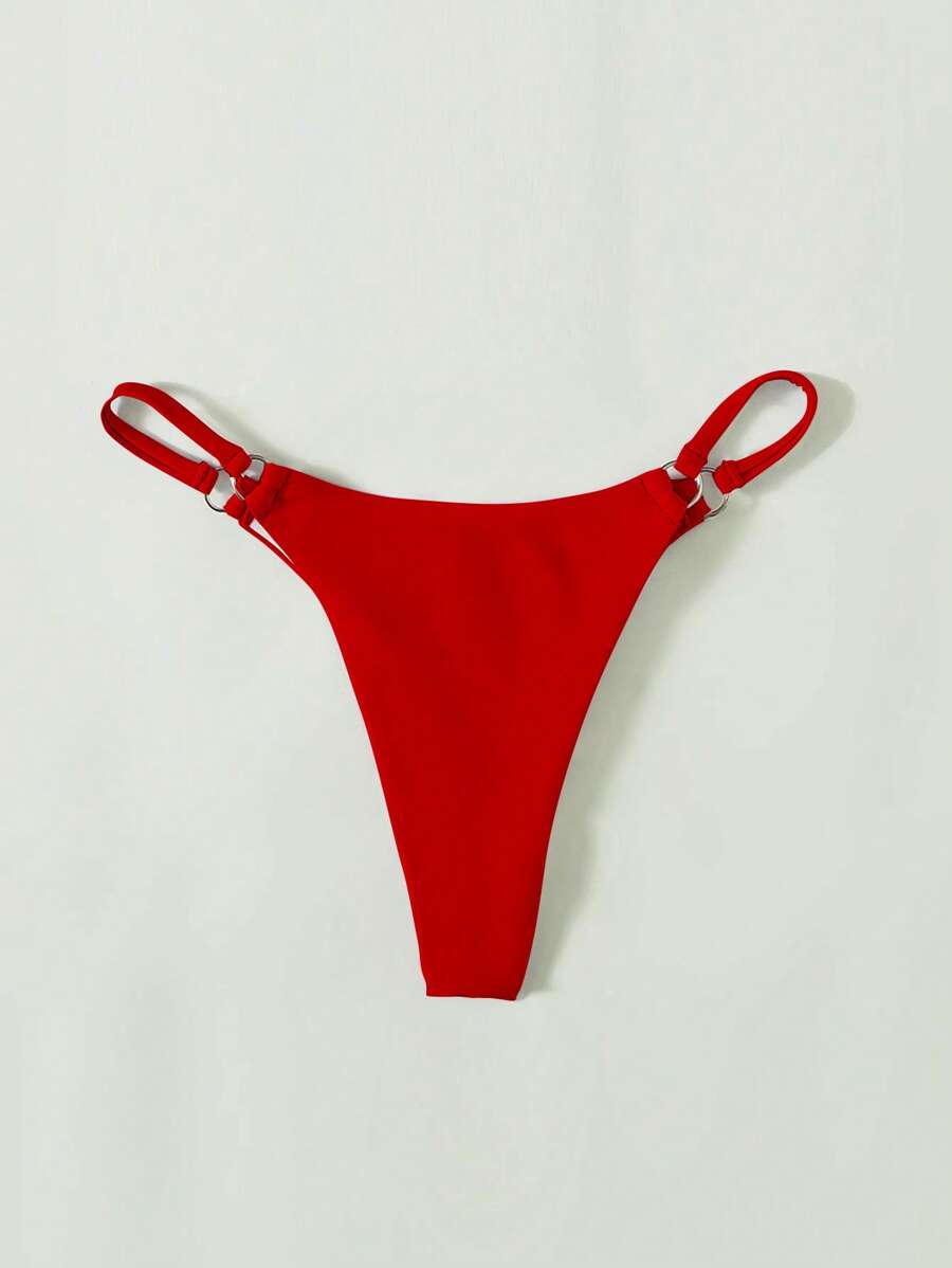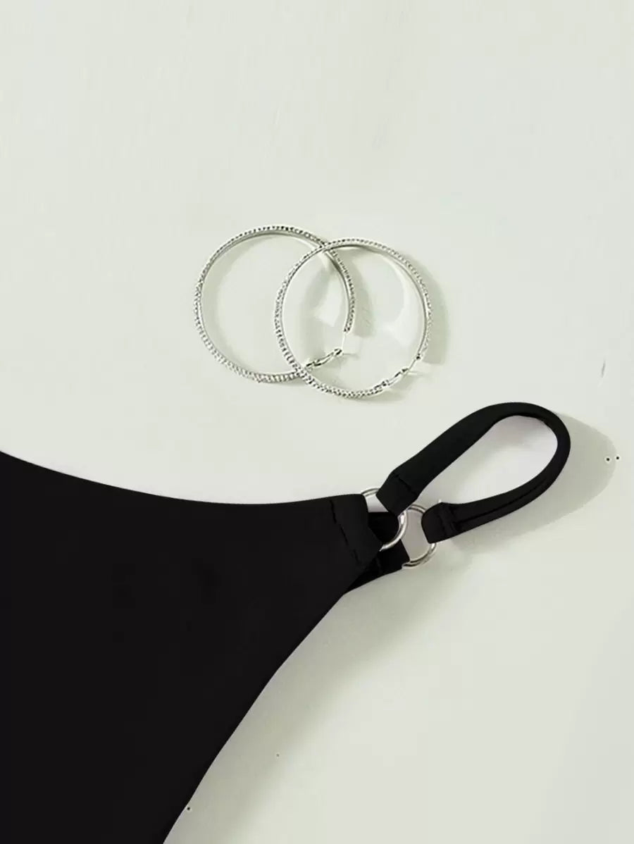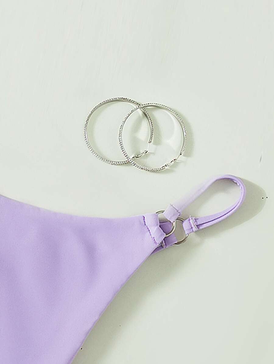 Traje de bano bikini con bottom con decoracion de anillo de unicolor