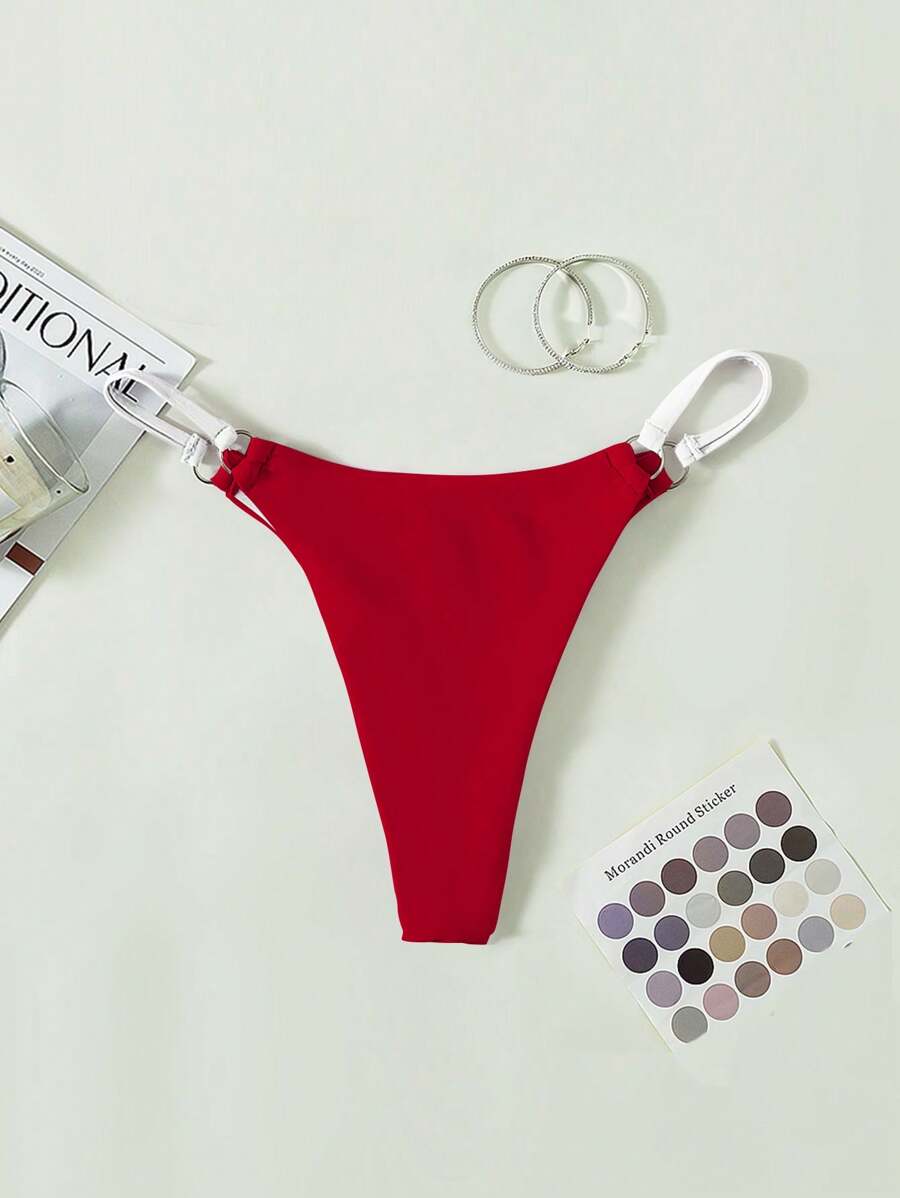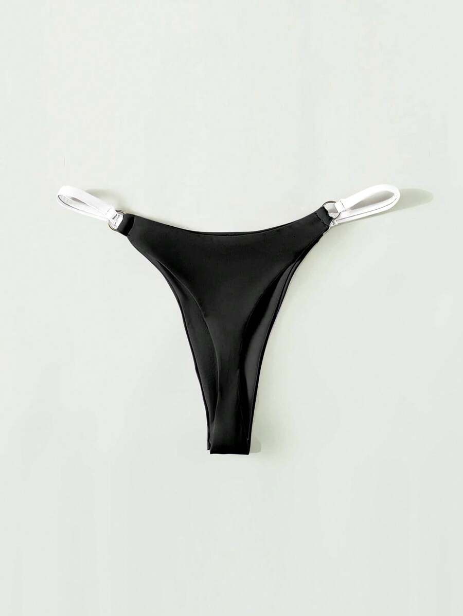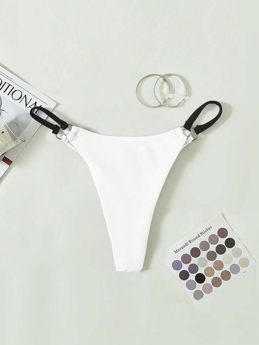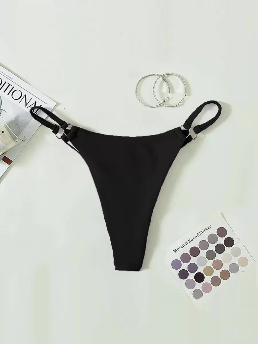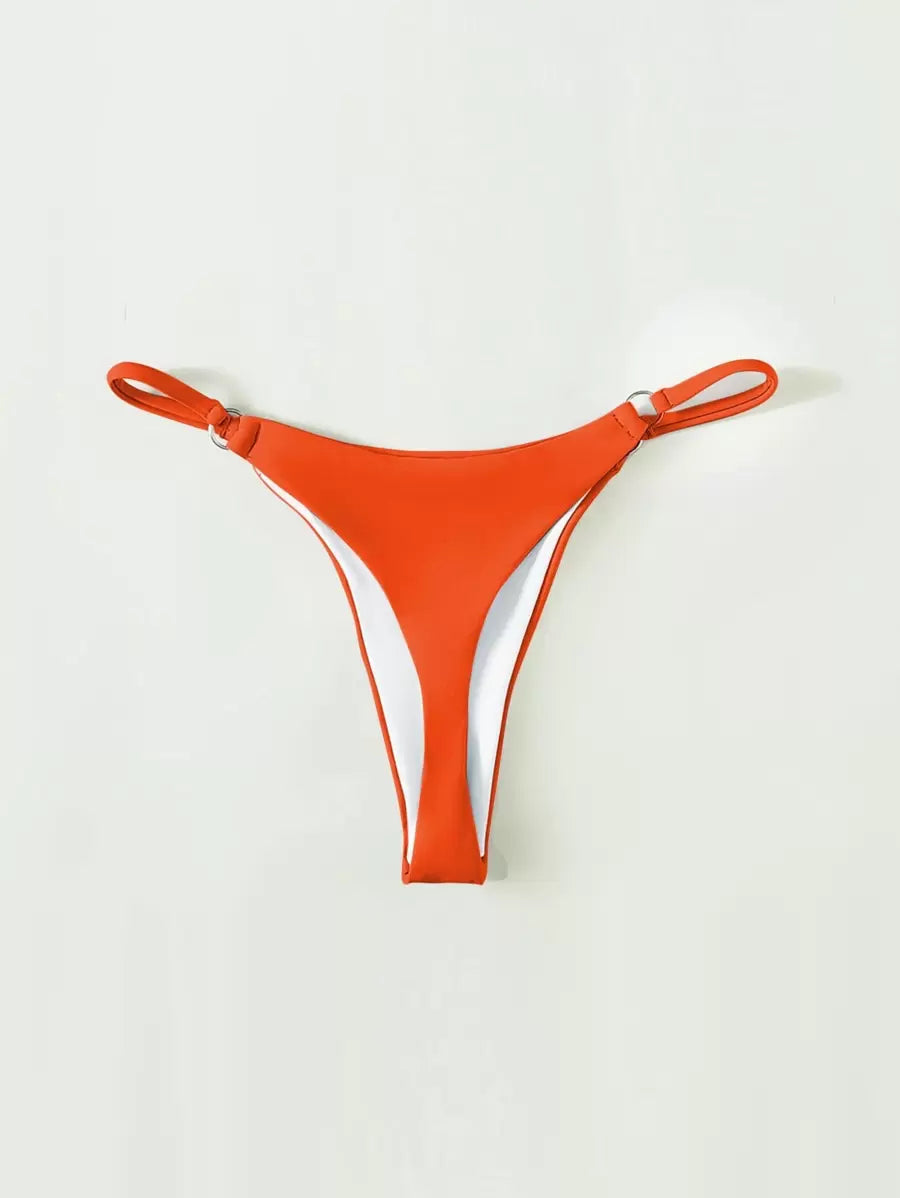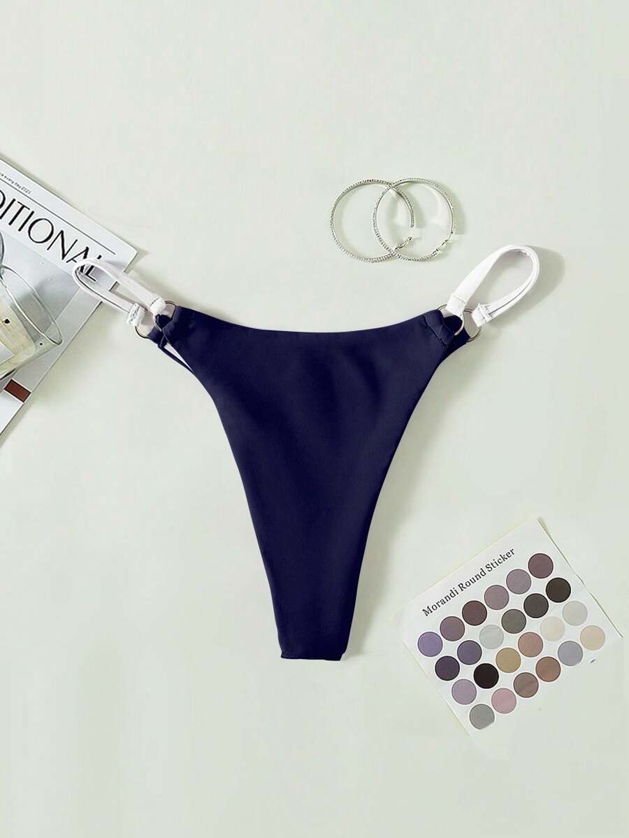 Traje de bano bikini con bottom con decoracion de anillo de unicolor