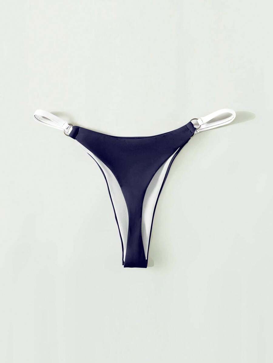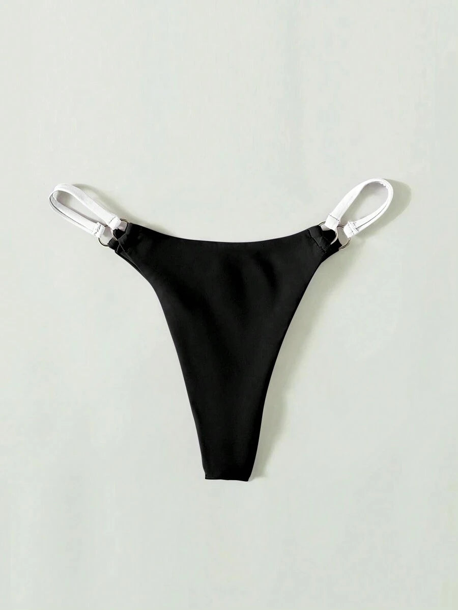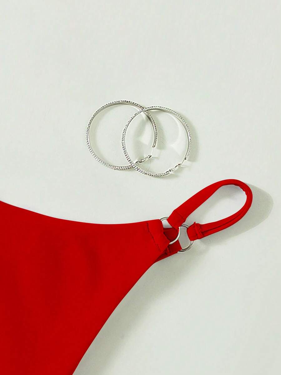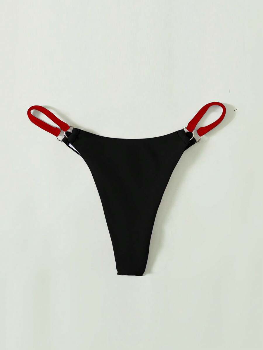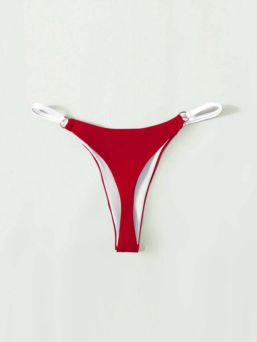 Traje de bano bikini con bottom con decoracion de anillo de unicolor