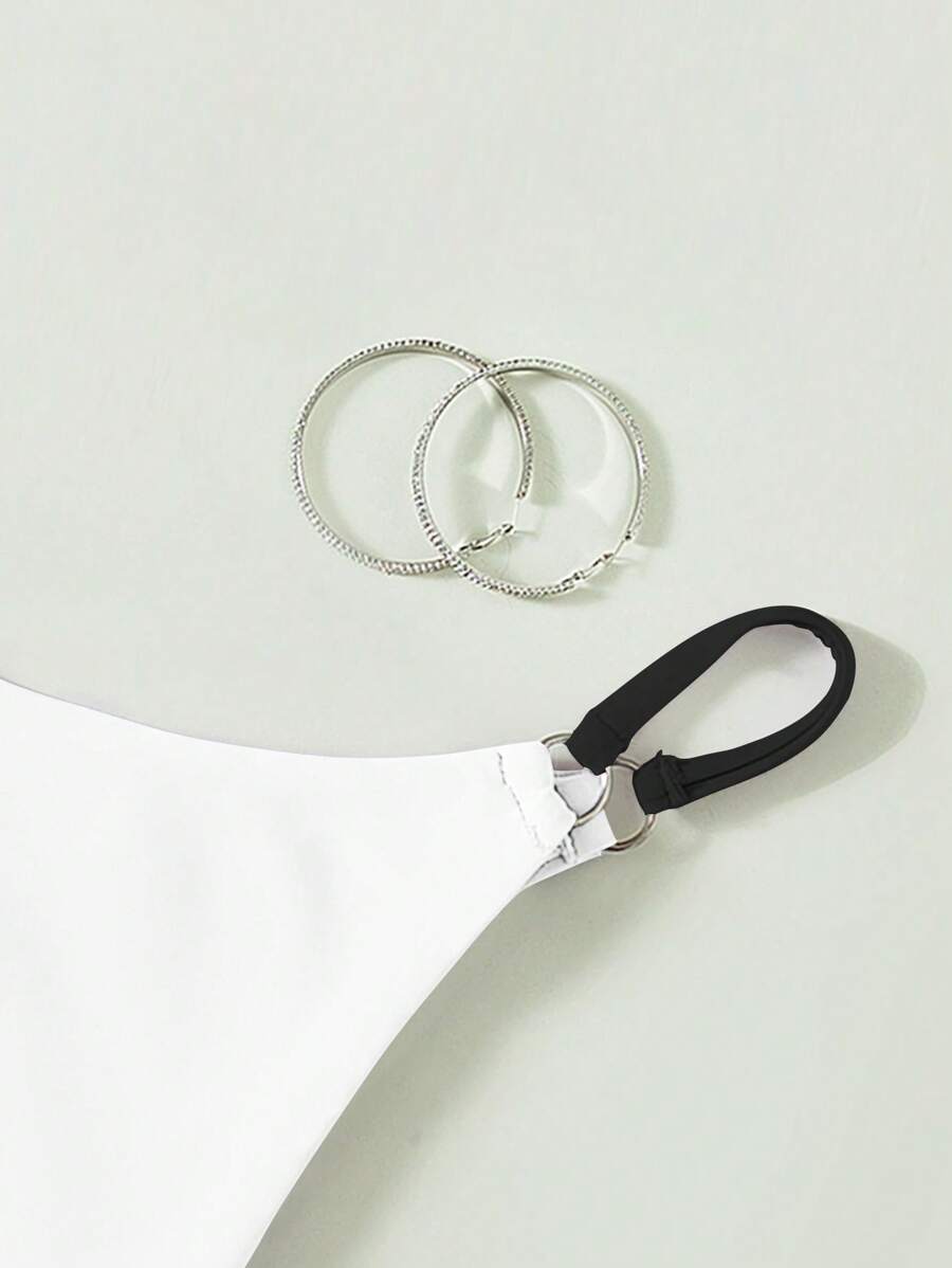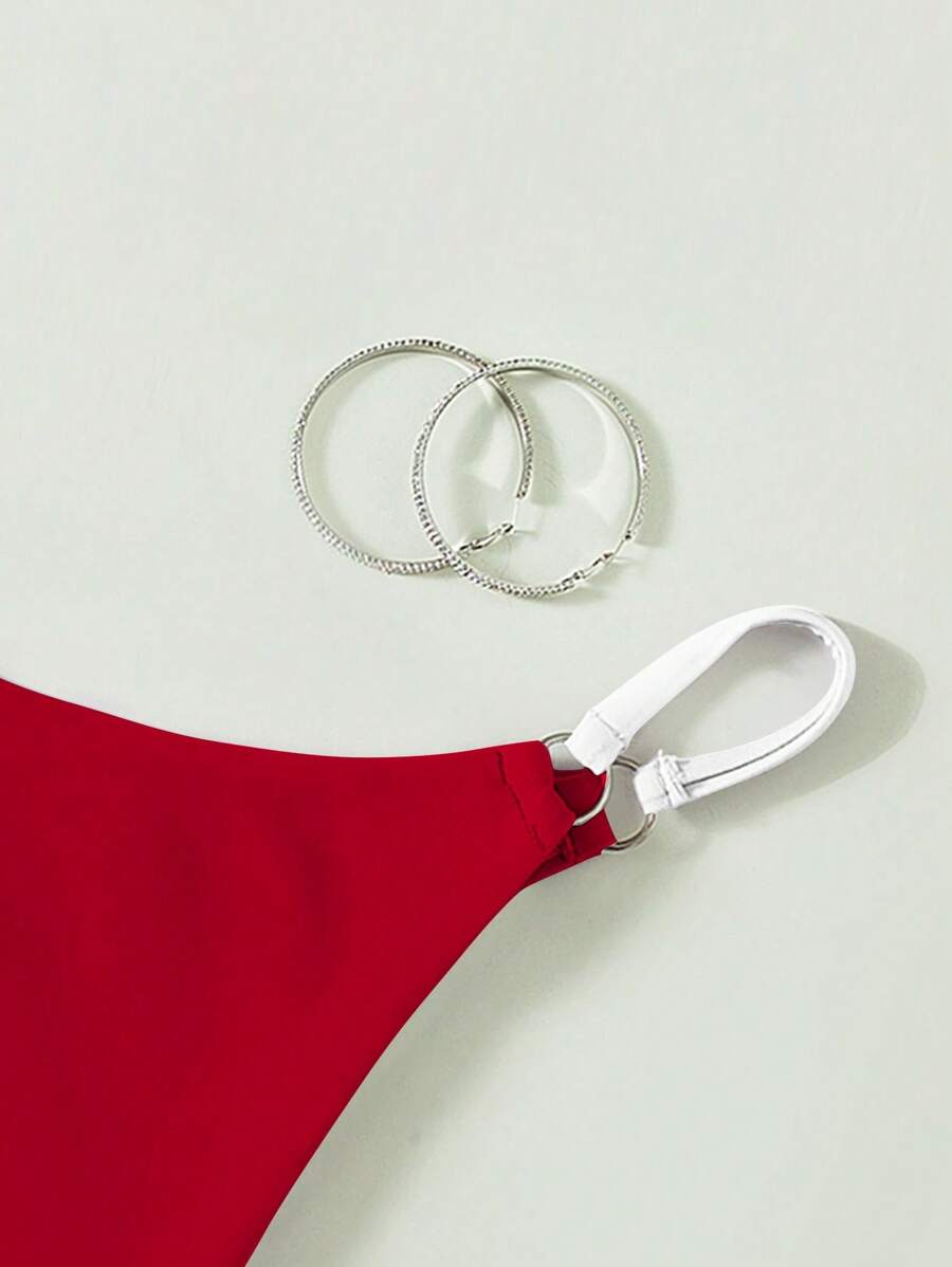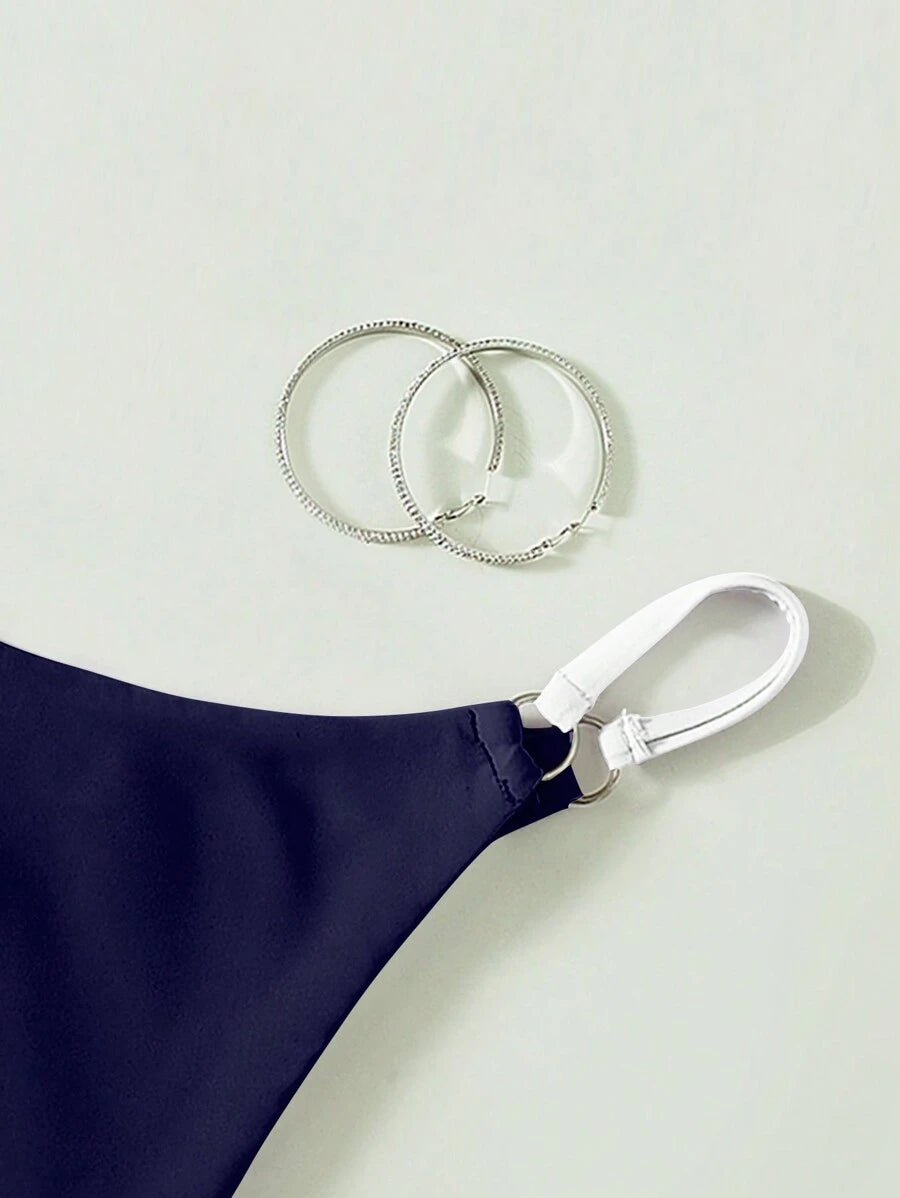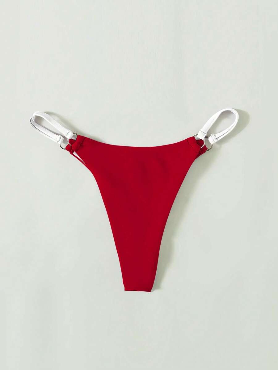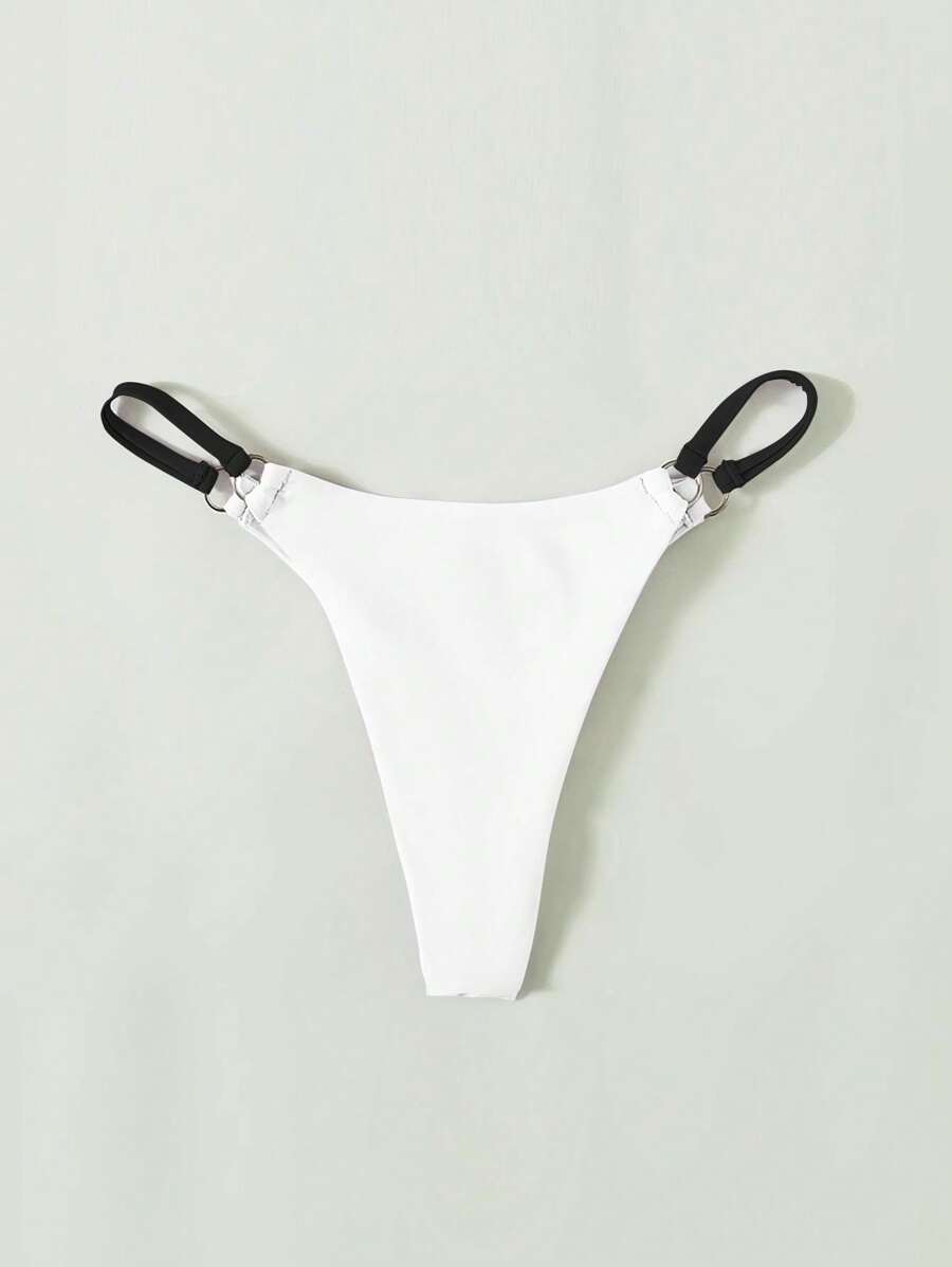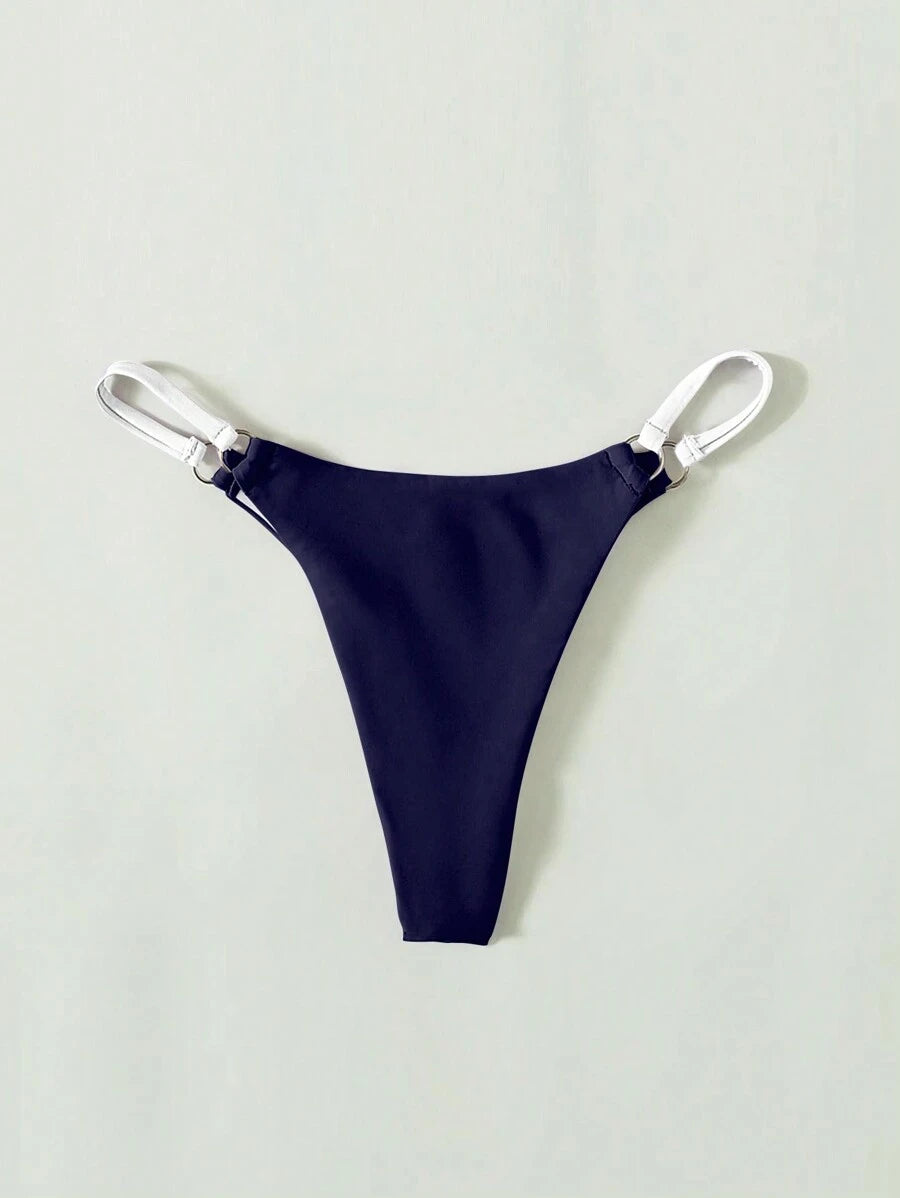 Traje de bano bikini con bottom con decoracion de anillo de unicolor
