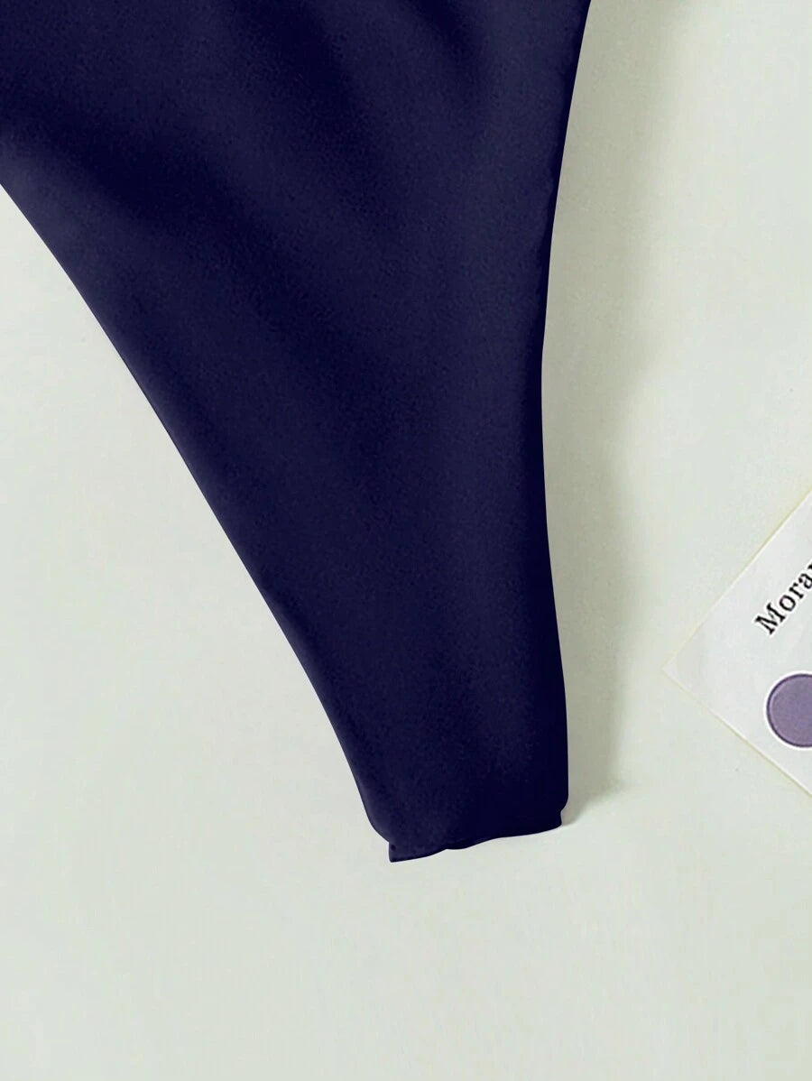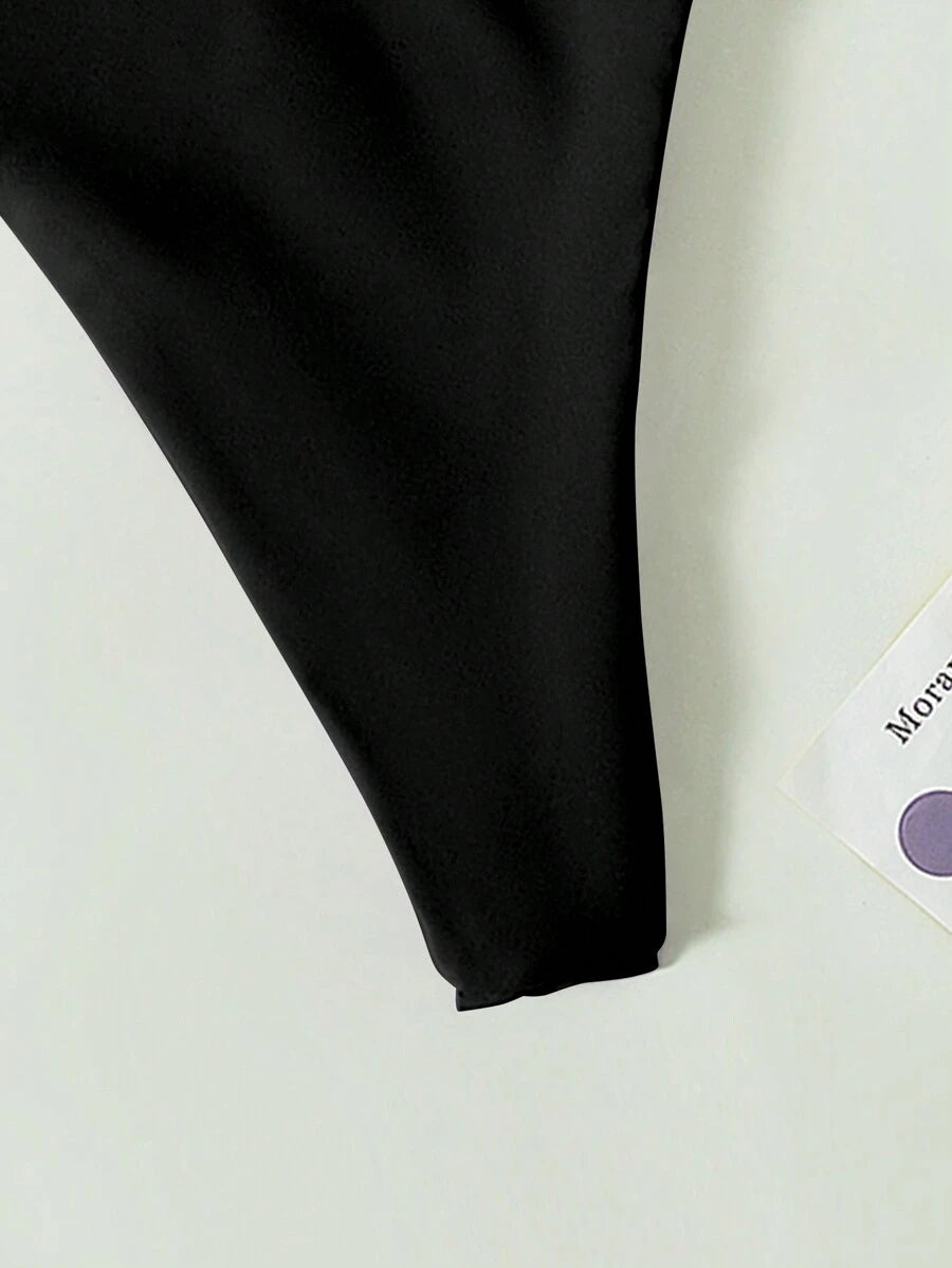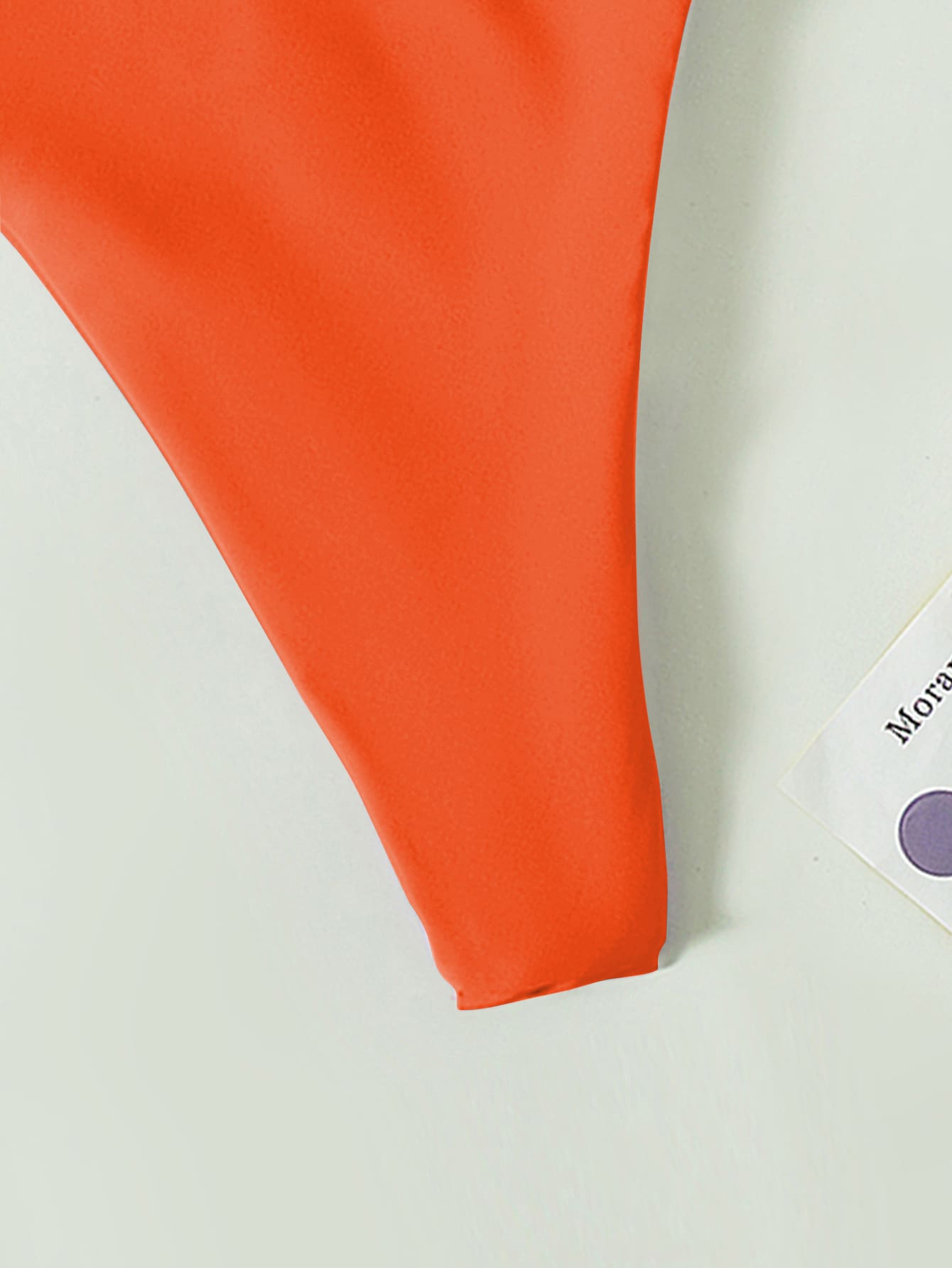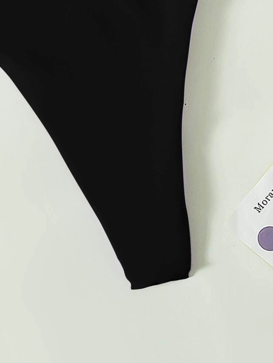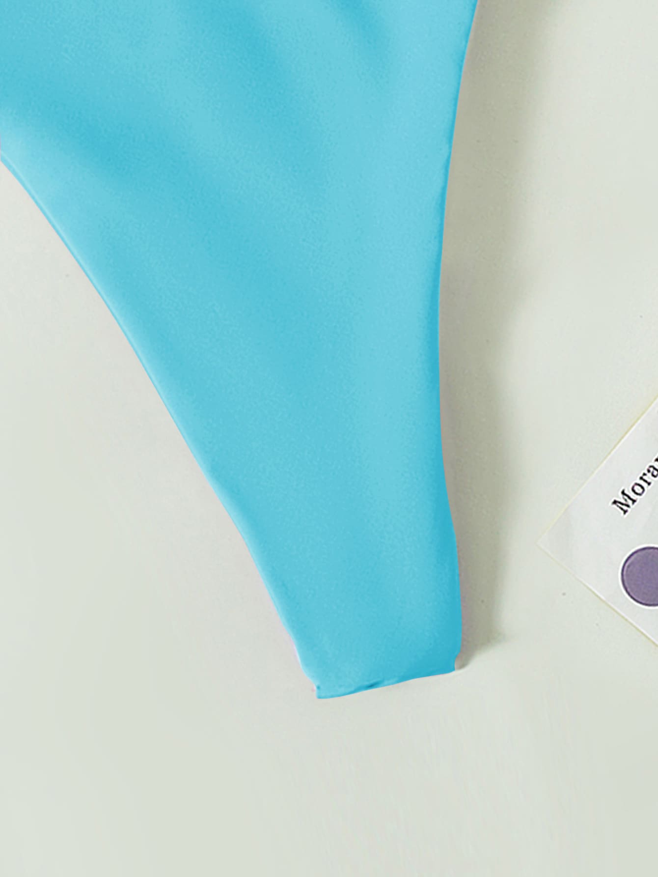Traje de bano bikini con bottom con decoracion de anillo de unicolor
