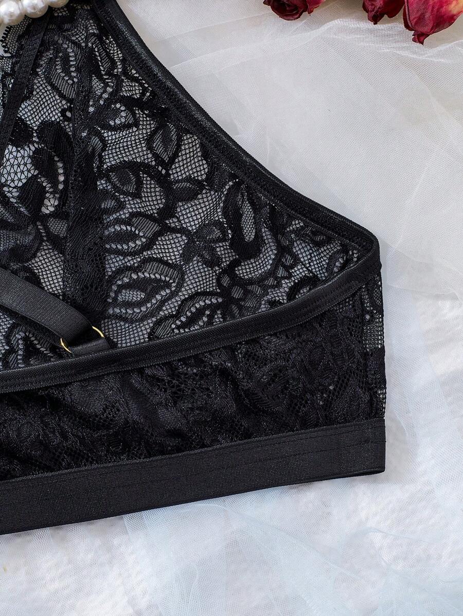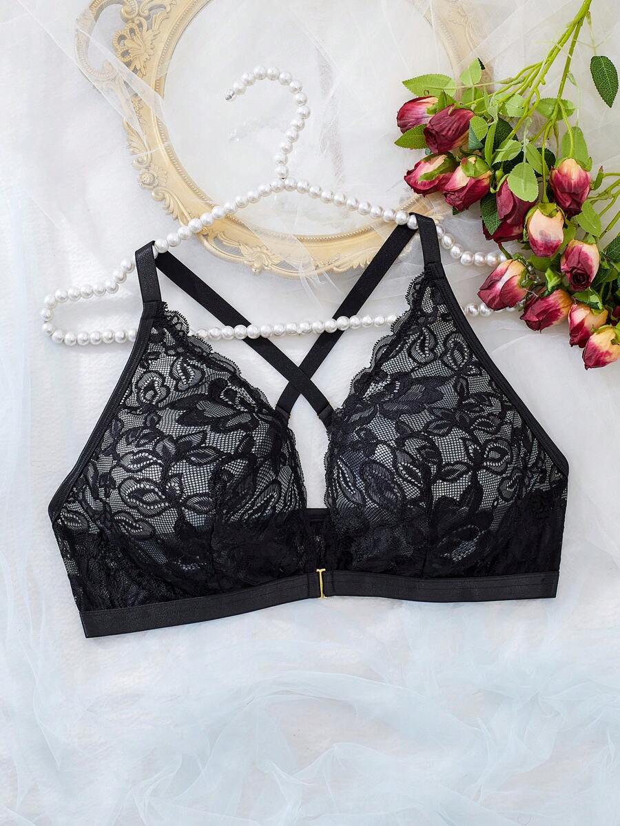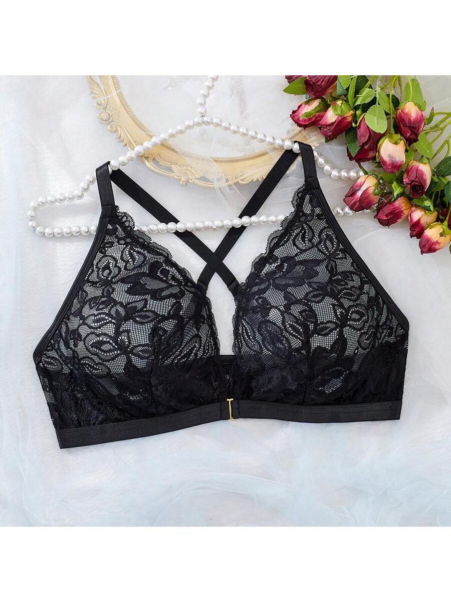 Brasier sin aros para mujer de talla grande, unicolor con encanto maduro, detalles elegantes de encaje, sin metal