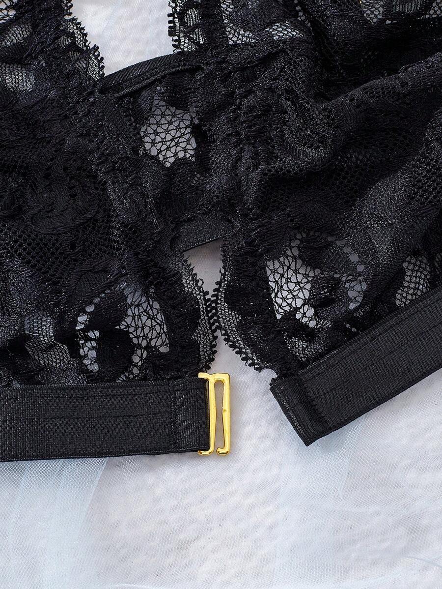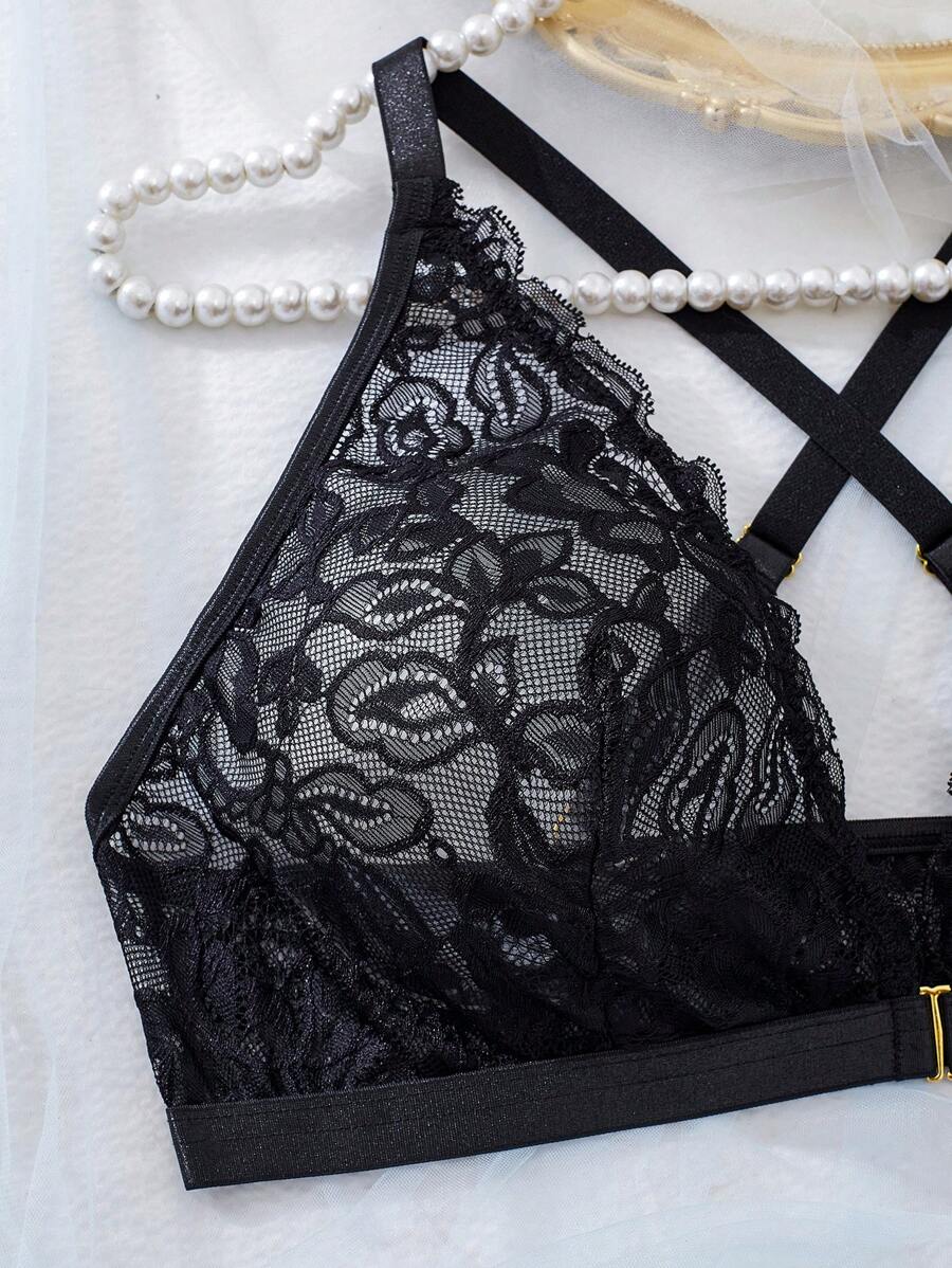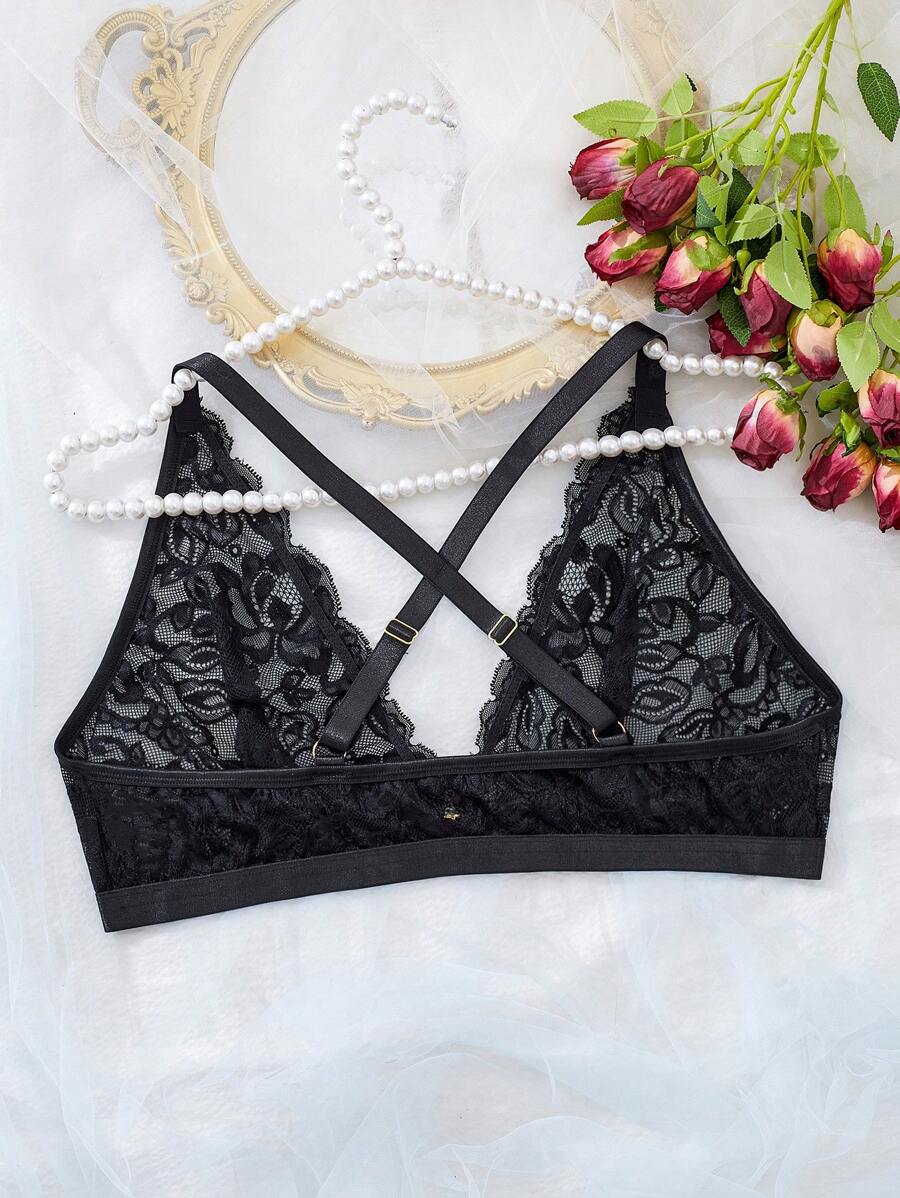 Brasier sin aros para mujer de talla grande, unicolor con encanto maduro, detalles elegantes de encaje, sin metal