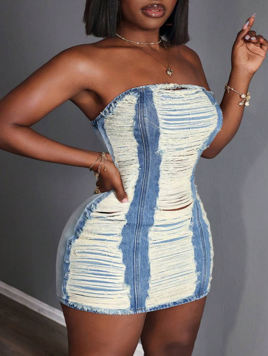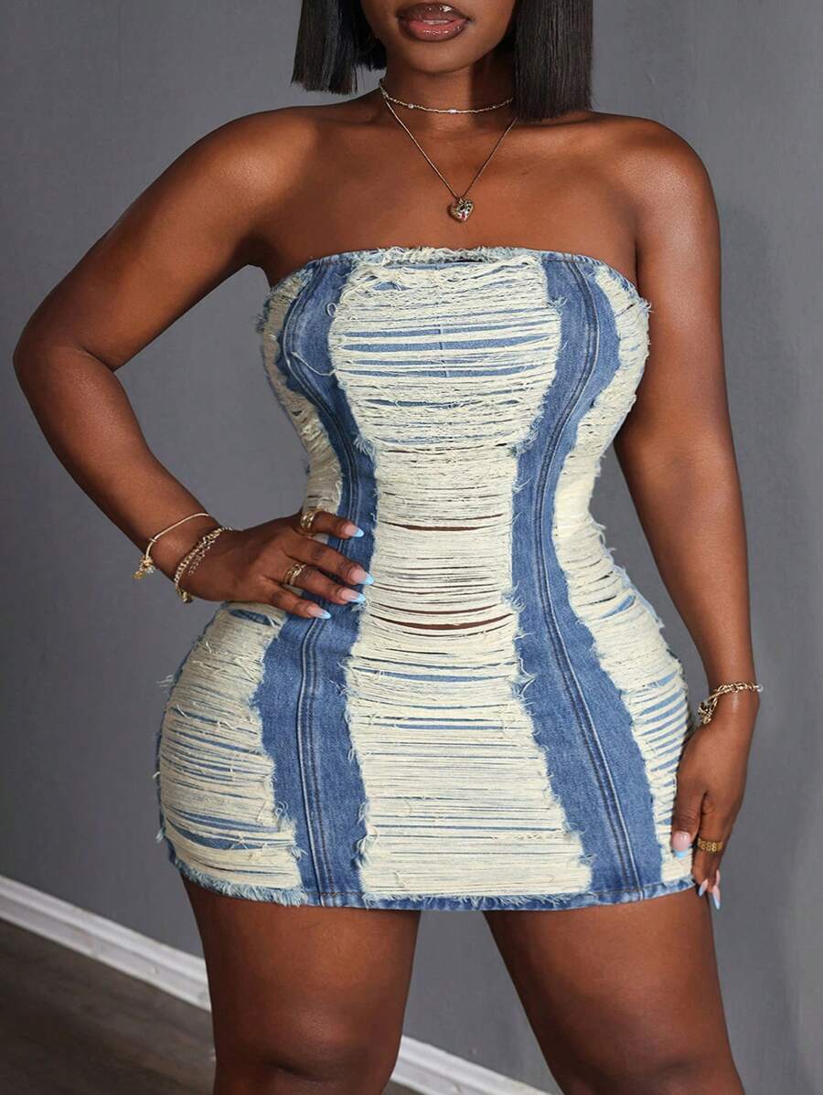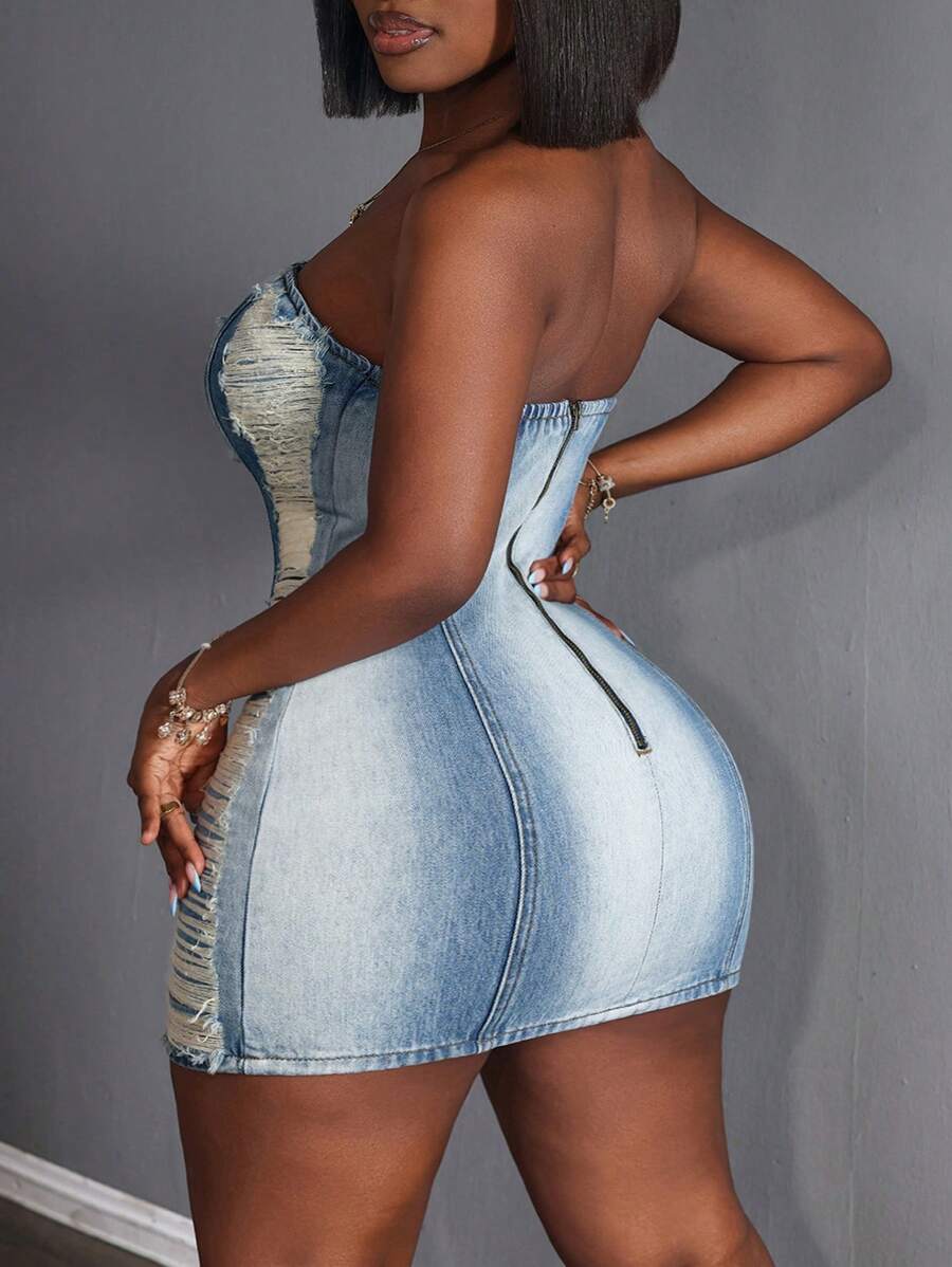 Vestido de camisola de mezclilla mini ajustado y rasgado con estilo sexy, talla grande, para verano