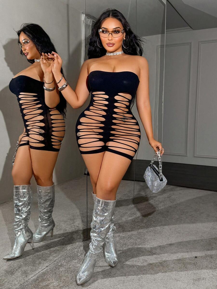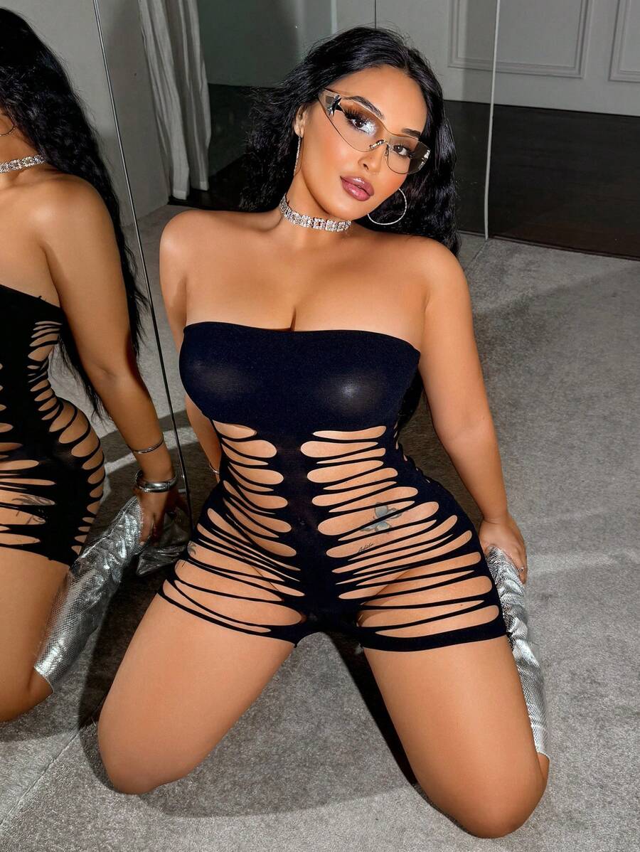 Chasethenight lenceria de talla grande - sin tirantes, con recortes, calado, ajustado, de red, body, apretado, atuendo de club ultra sexy y seductor