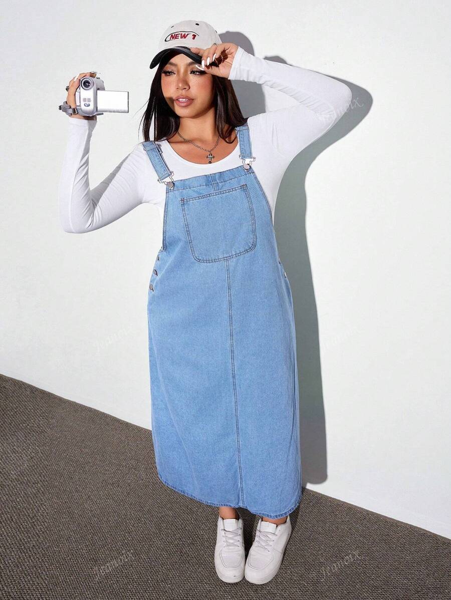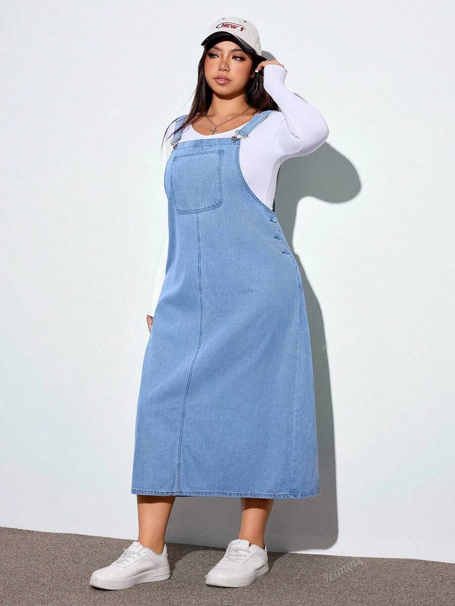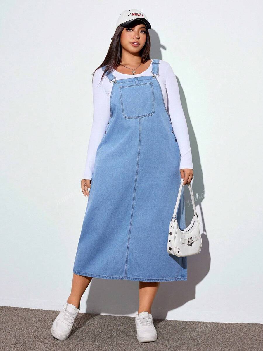 Jeanoix vestido vaquero sin mangas de unicolor con bolsillos para tallas grandes