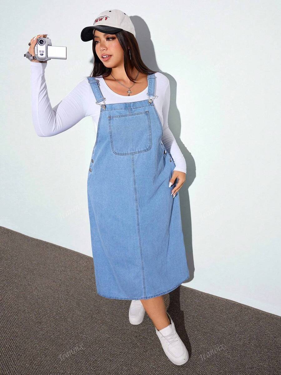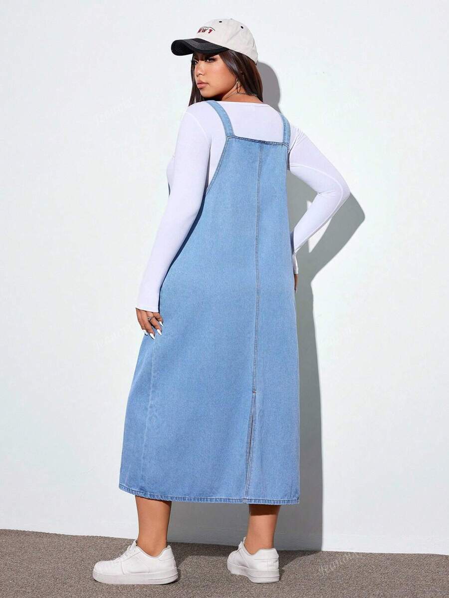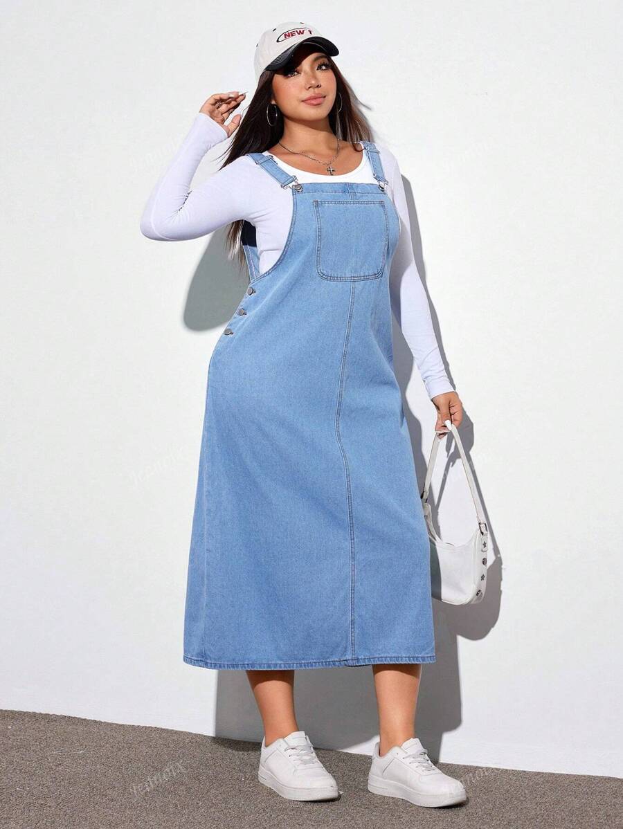 Jeanoix vestido vaquero sin mangas de unicolor con bolsillos para tallas grandes