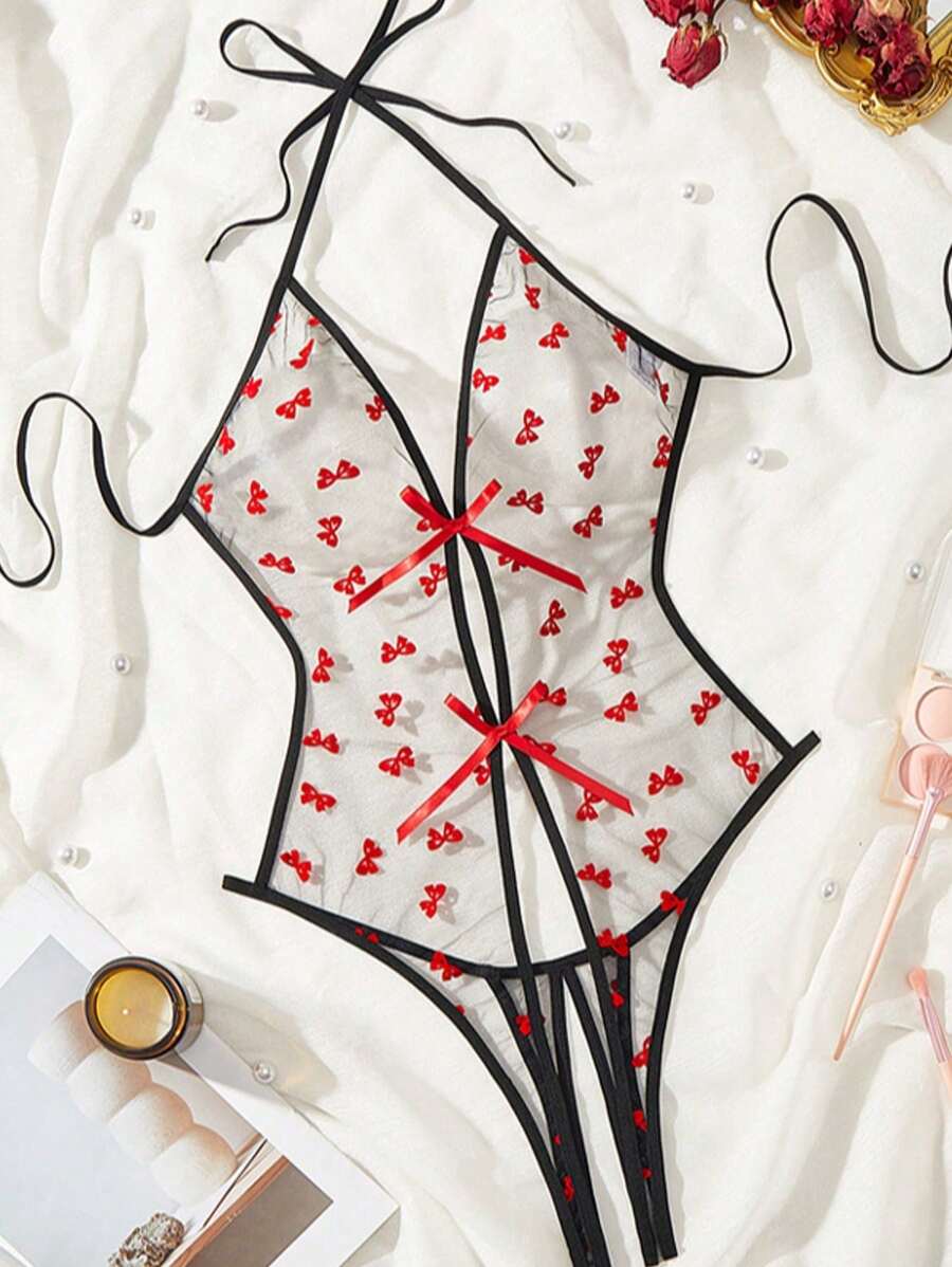Enterizo de mujer de un solo color, de microtransparencia y cadena sexy