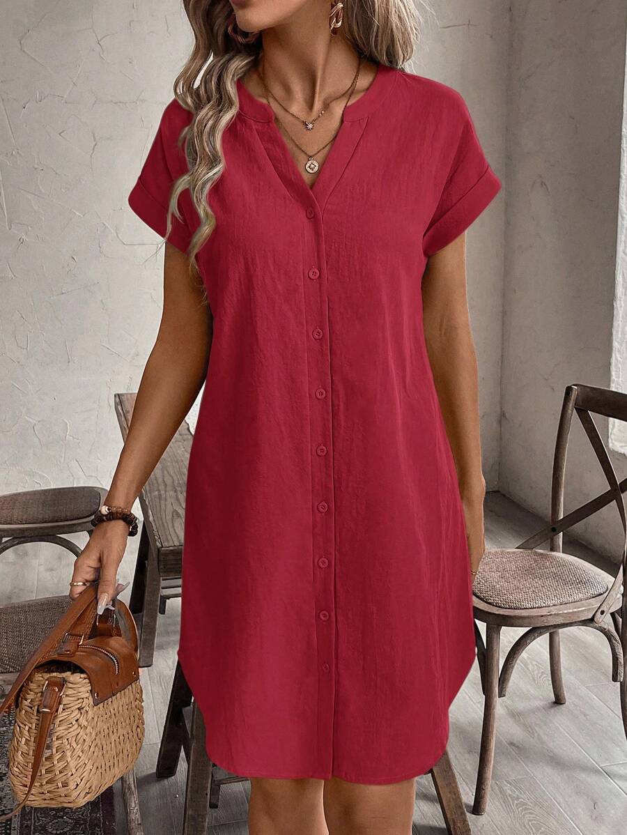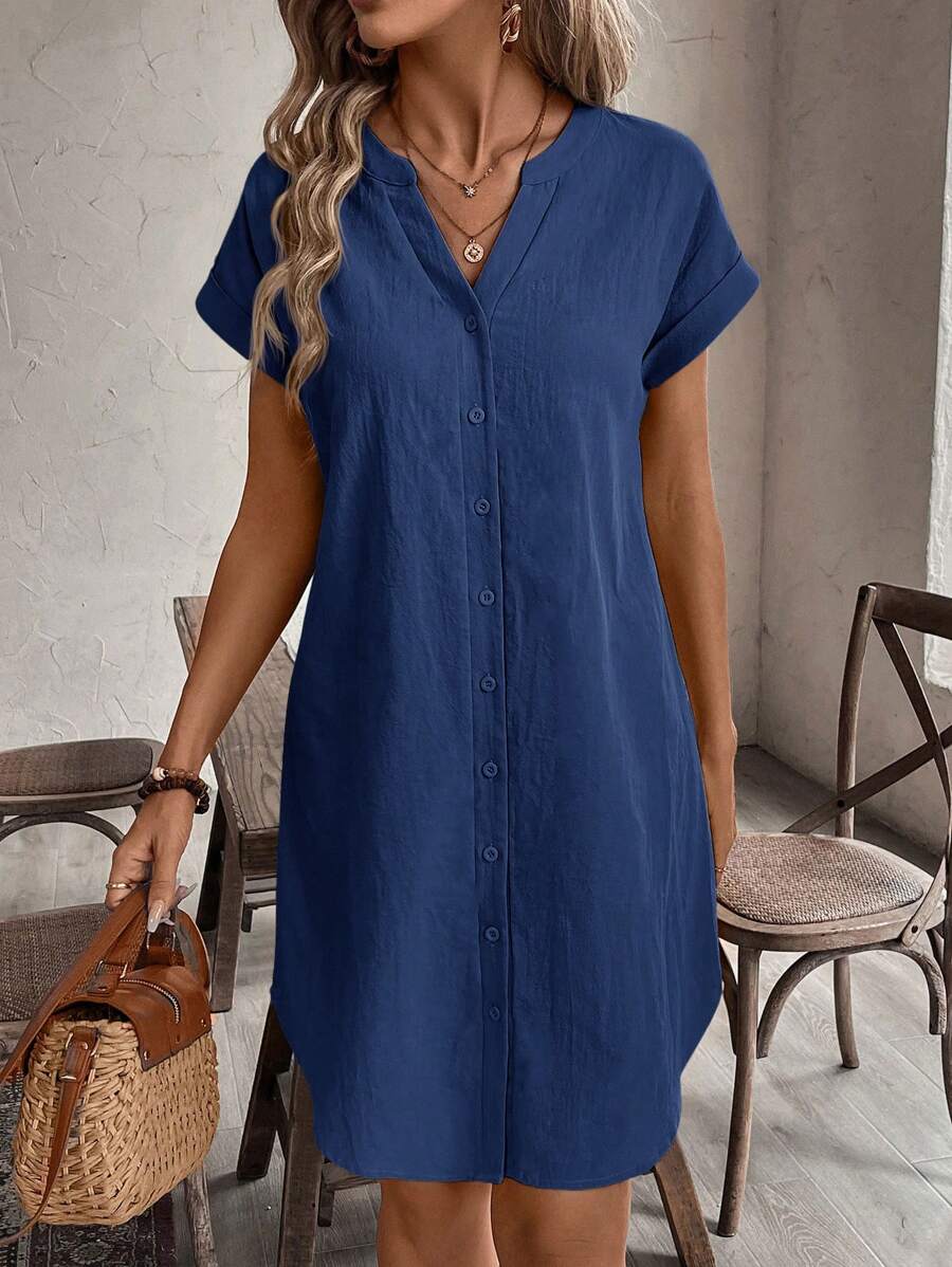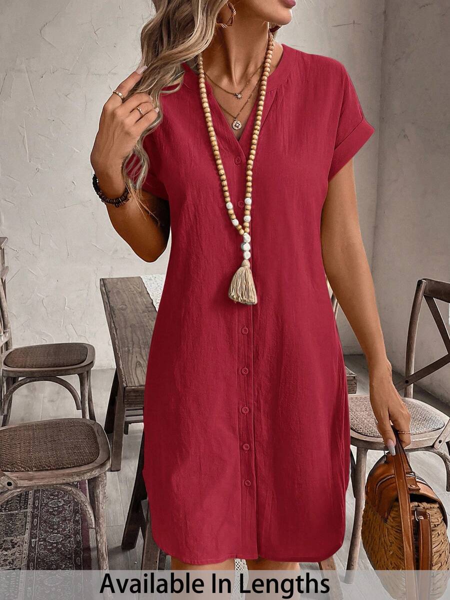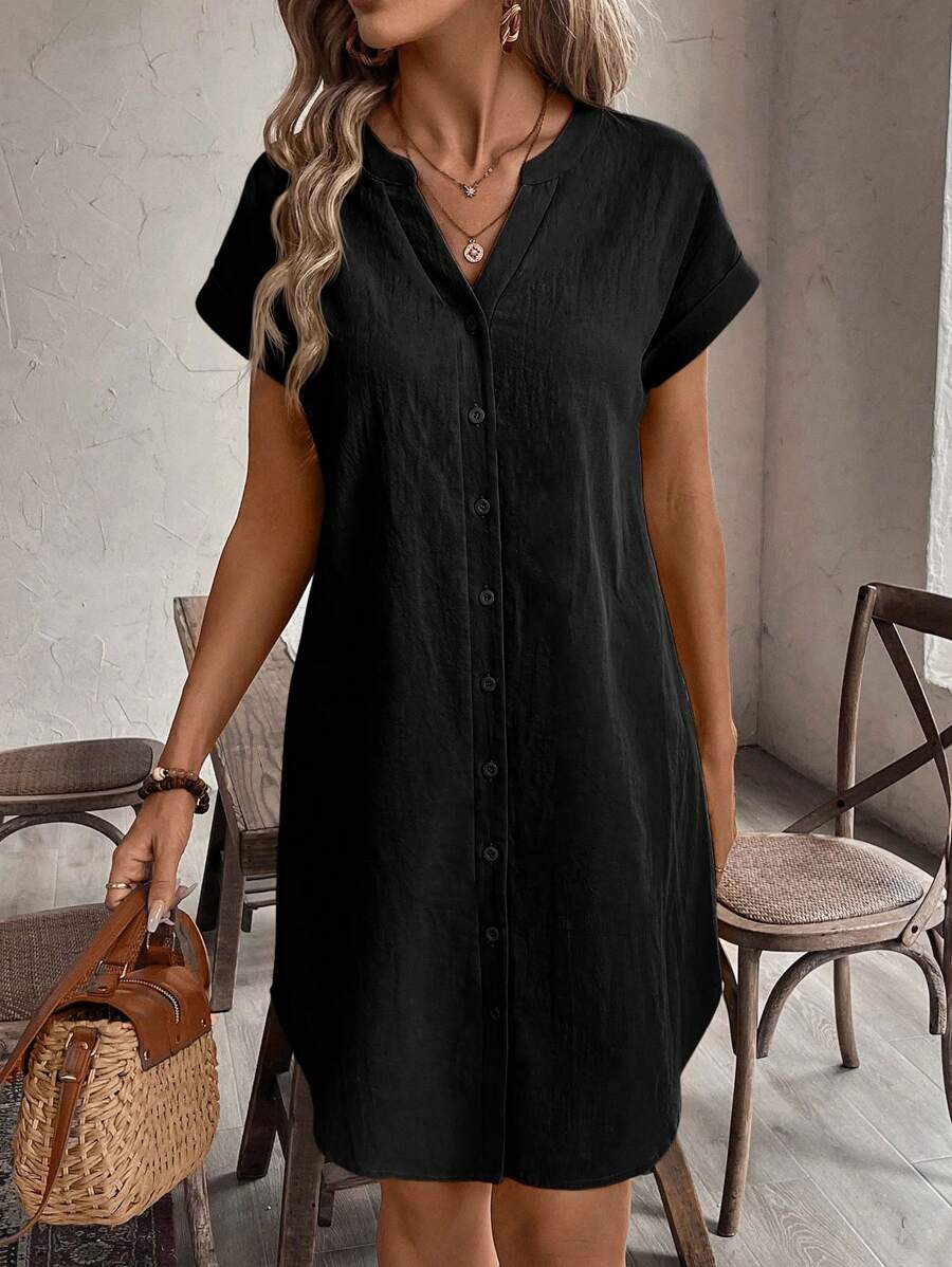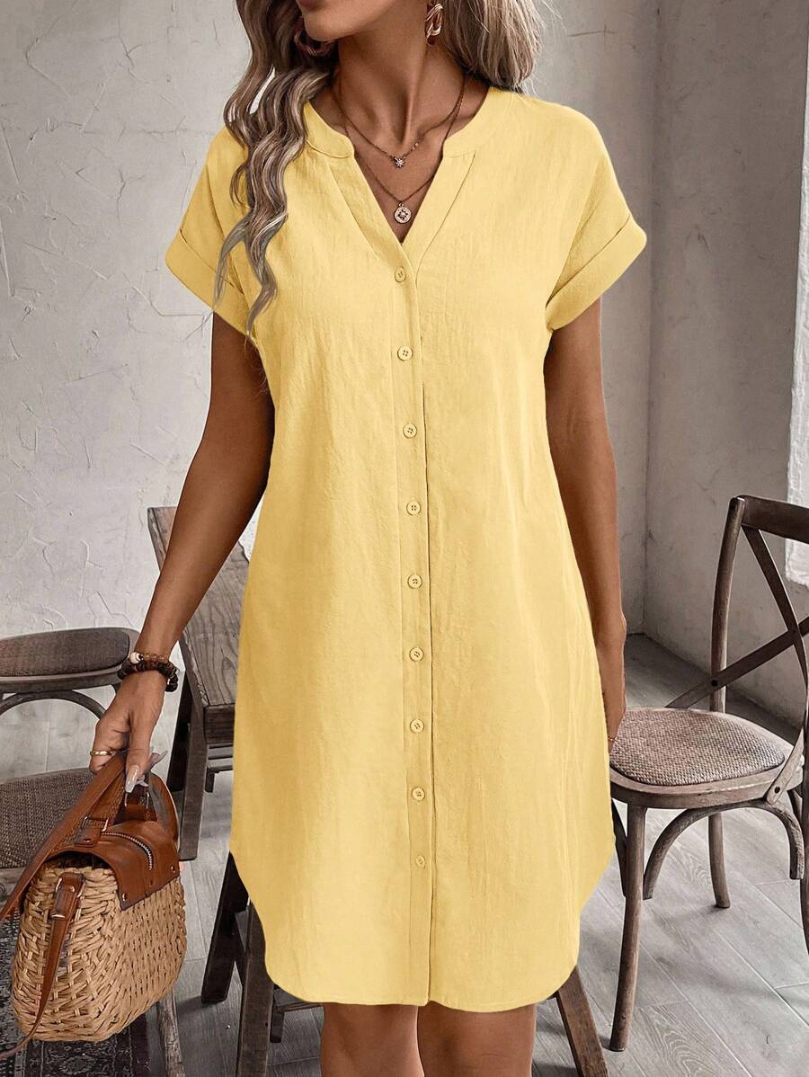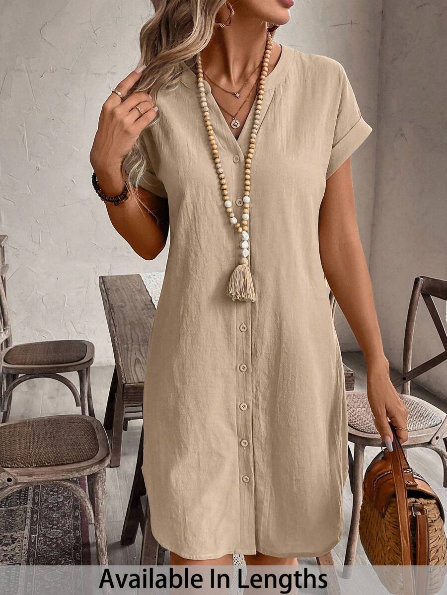 Curve vestido informal de talla grande para vacaciones con cuello en pico y botones frontales de unicolor