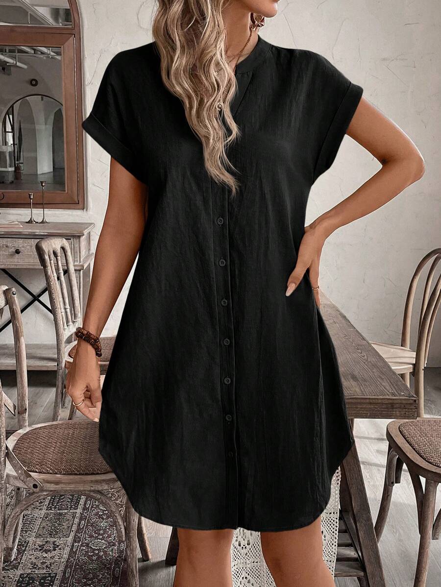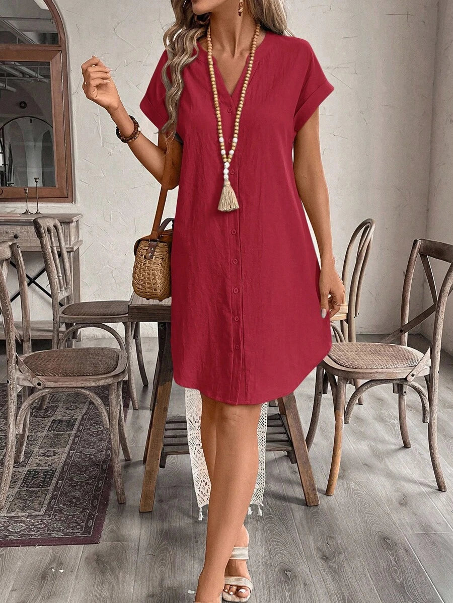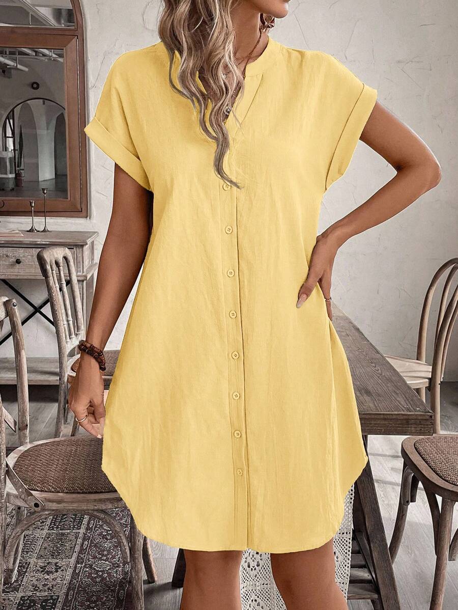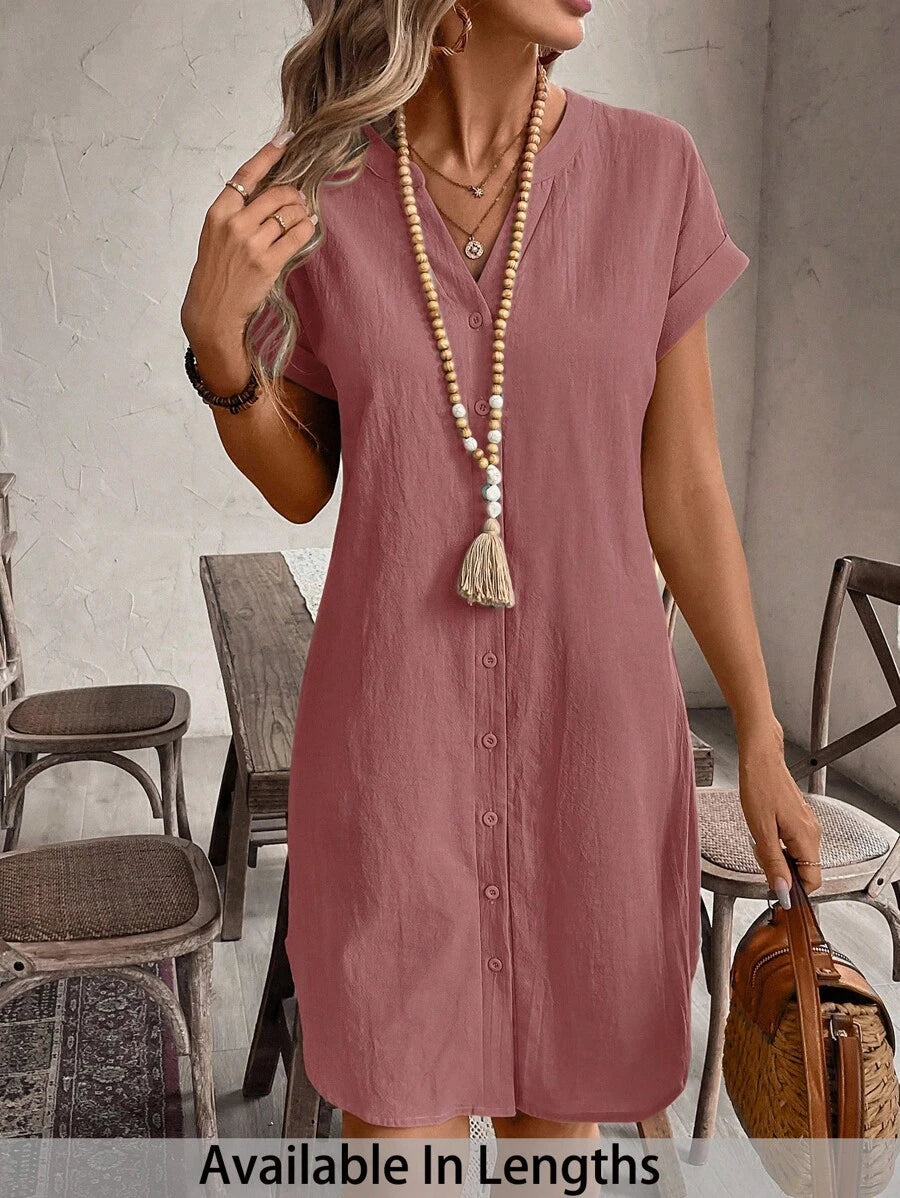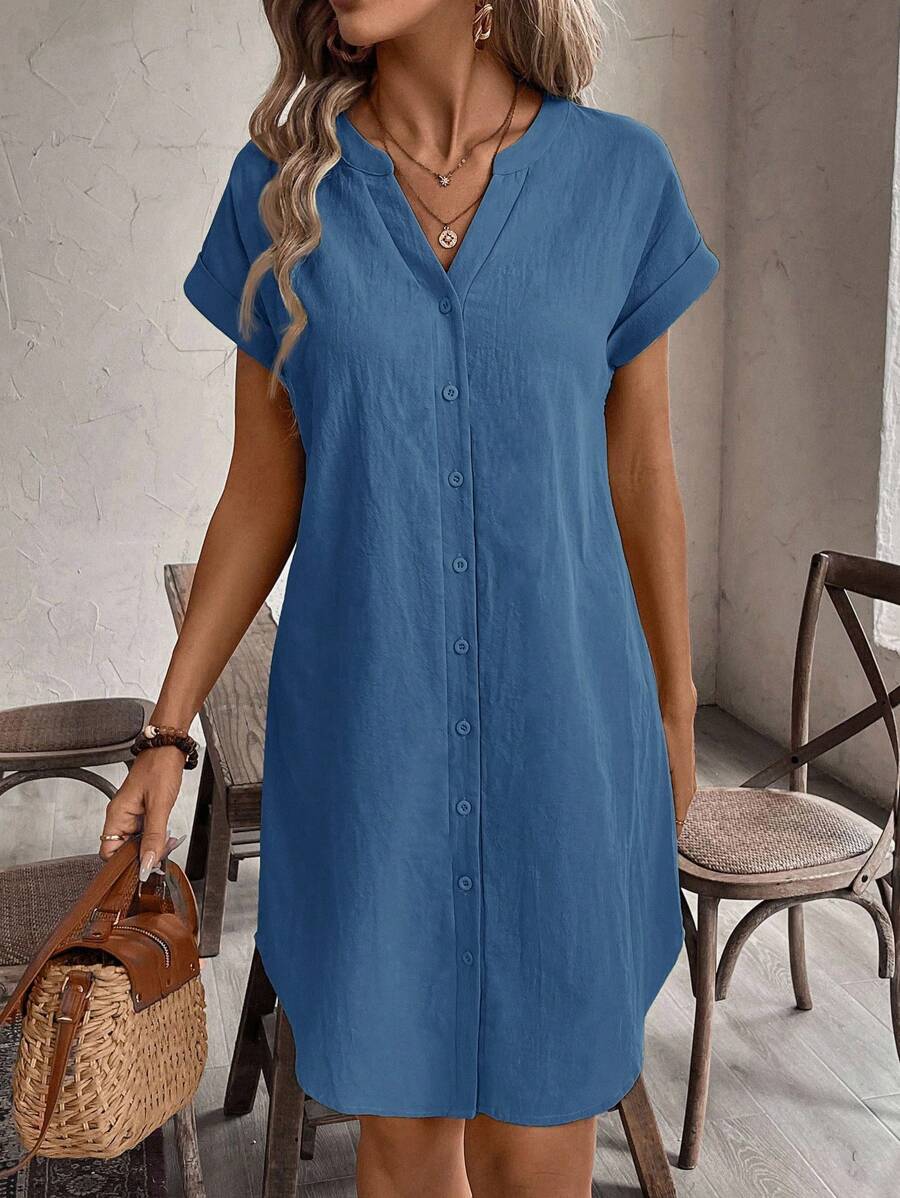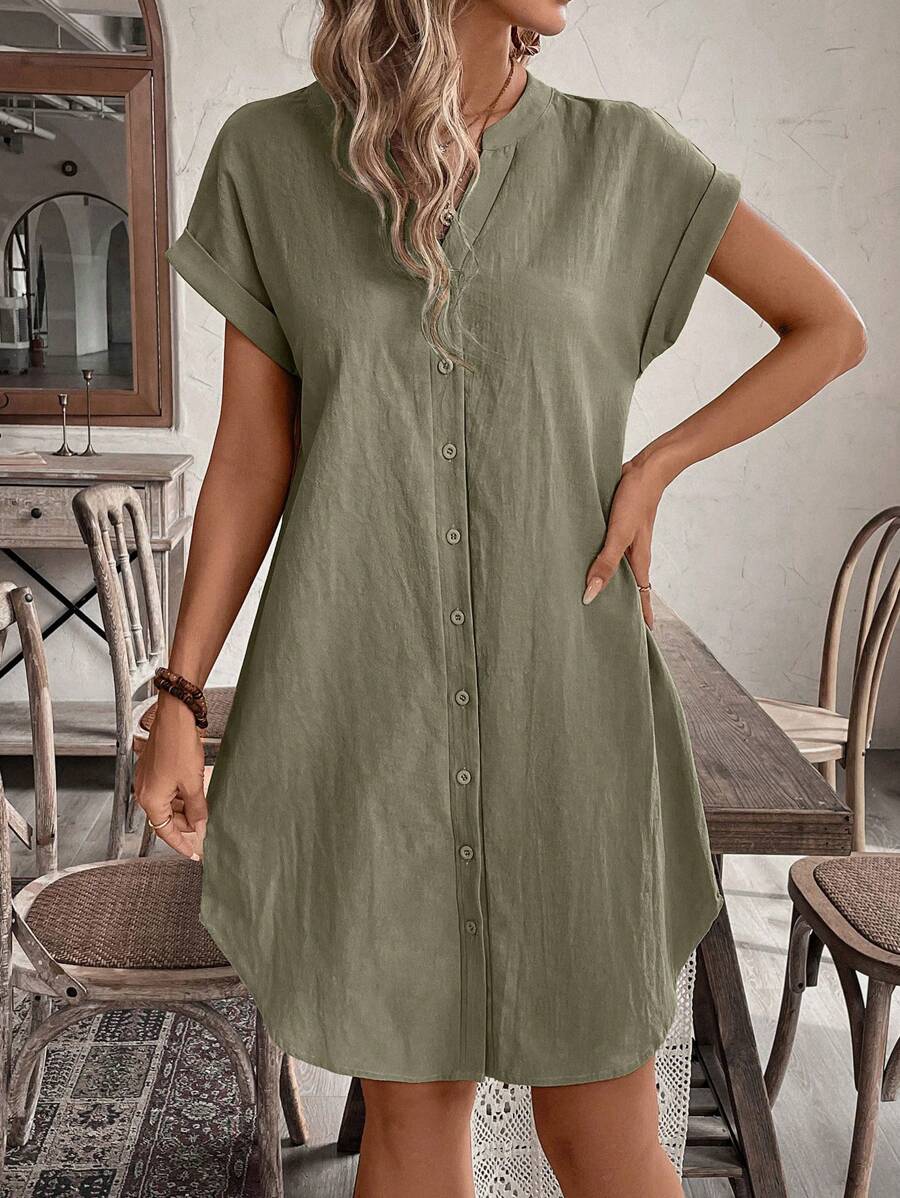 Curve vestido informal de talla grande para vacaciones con cuello en pico y botones frontales de unicolor