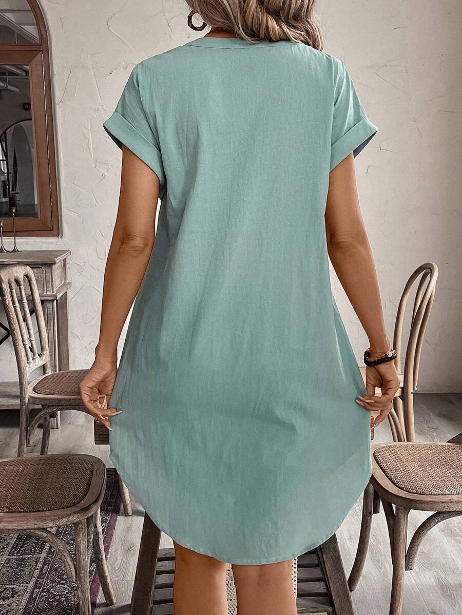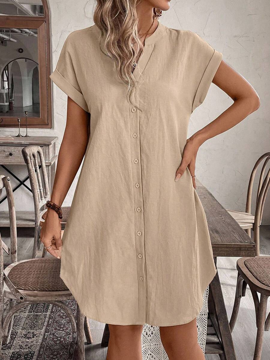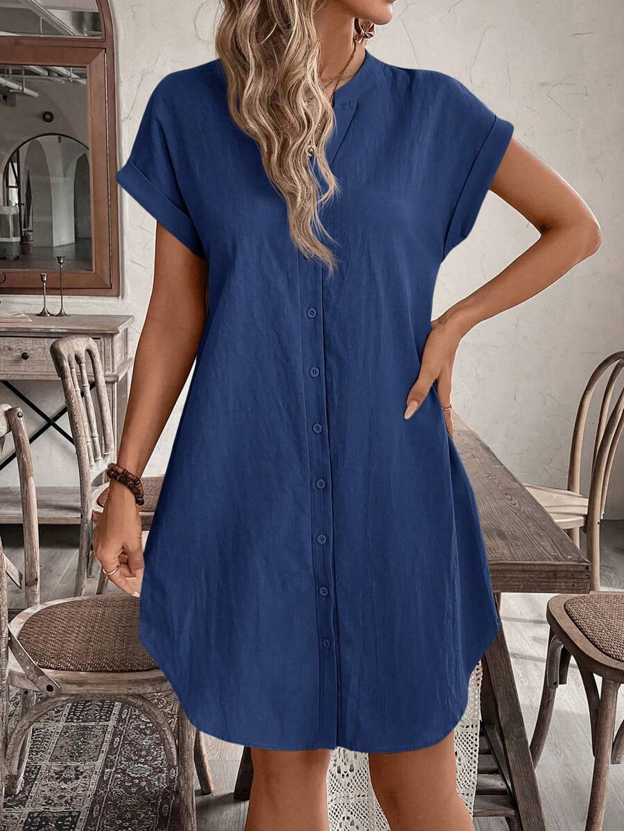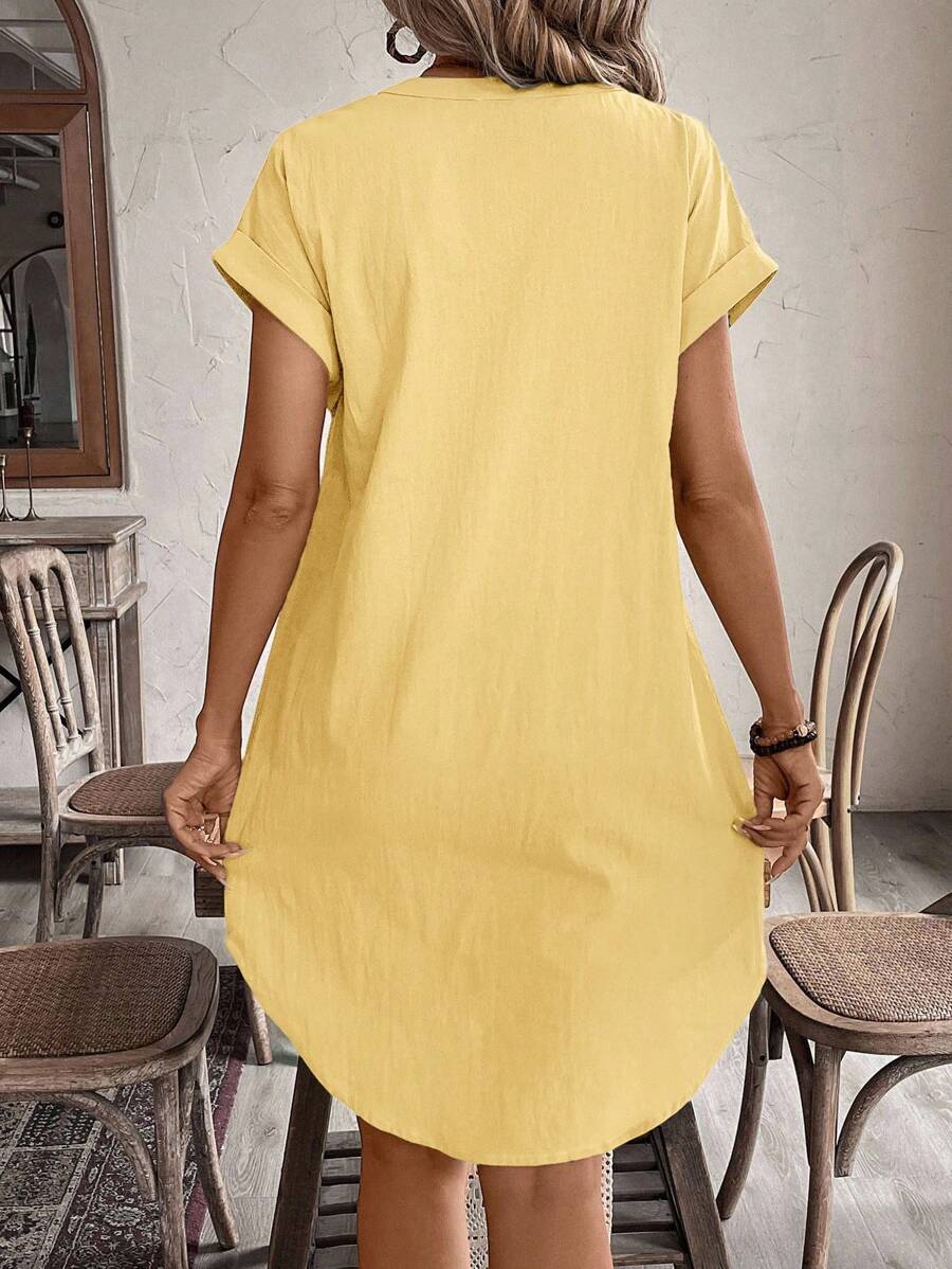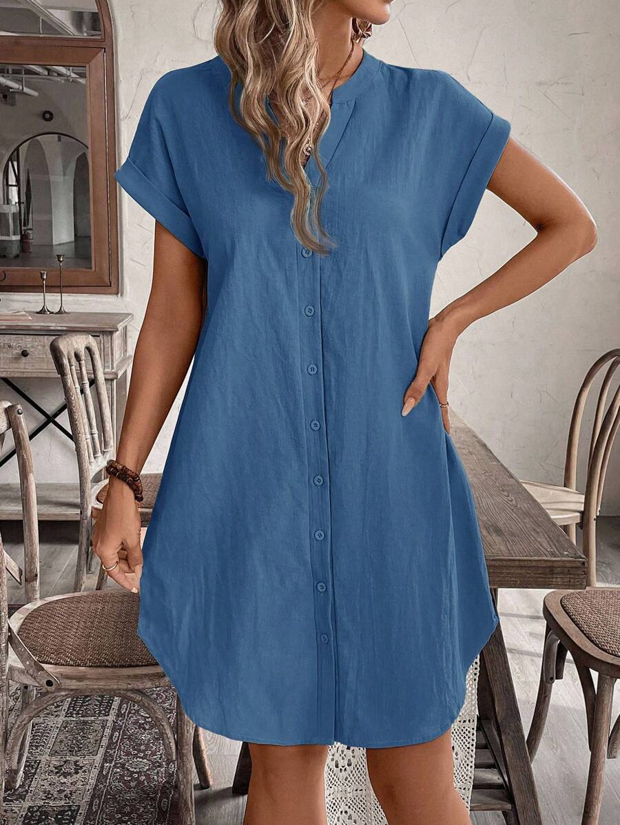 Curve vestido informal de talla grande para vacaciones con cuello en pico y botones frontales de unicolor