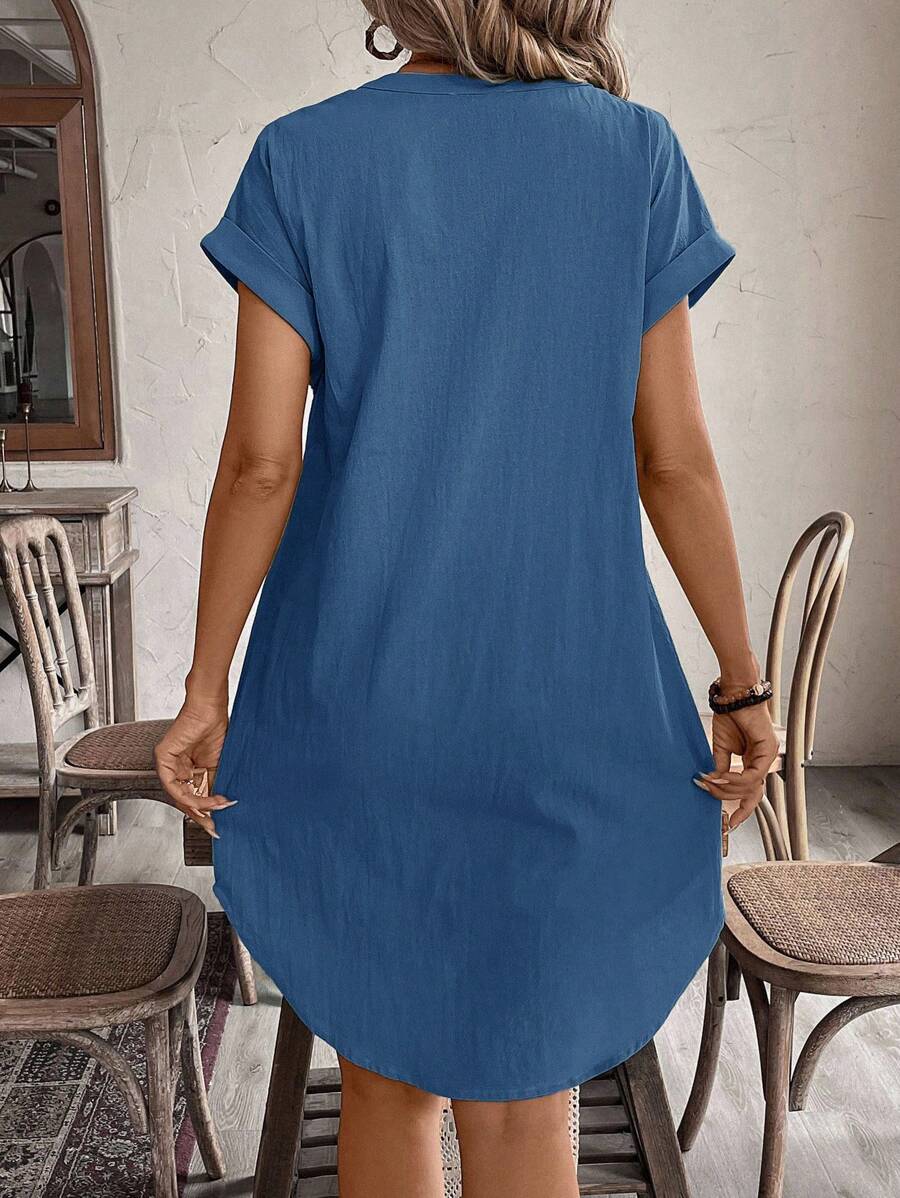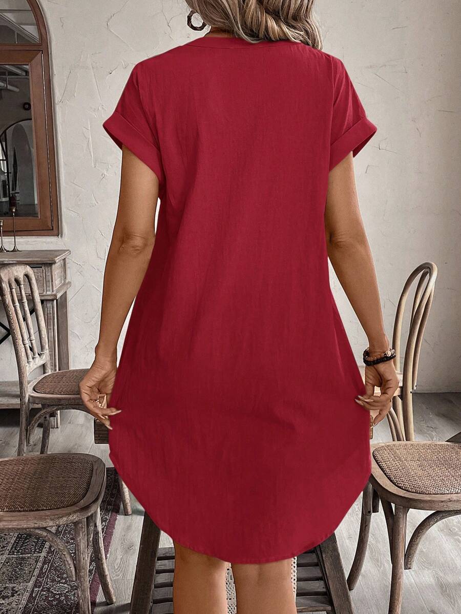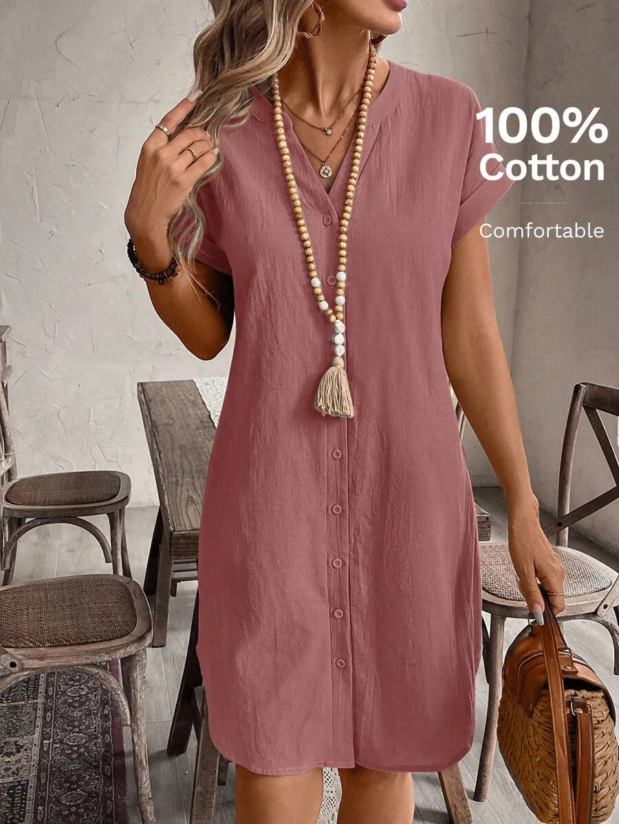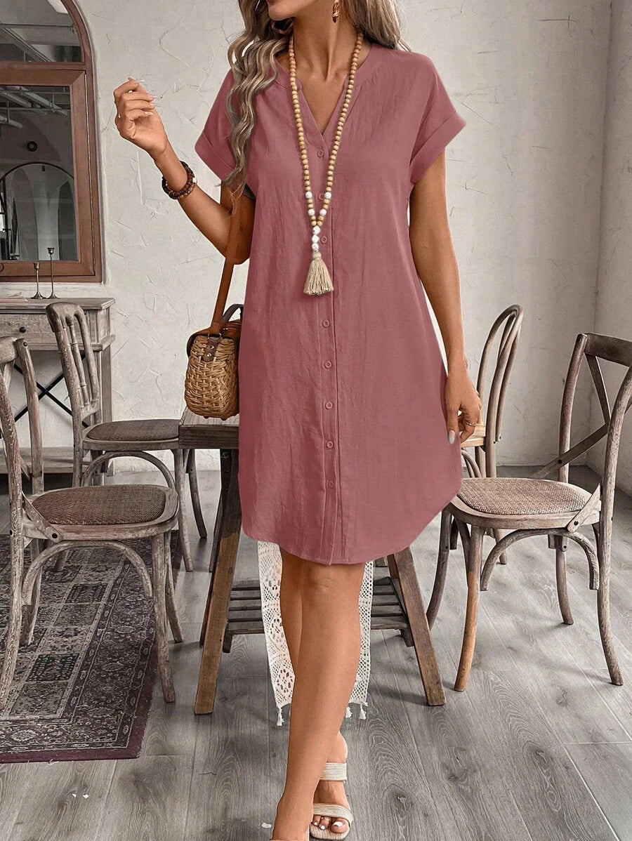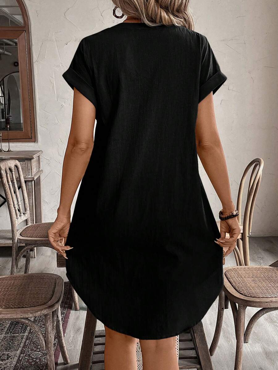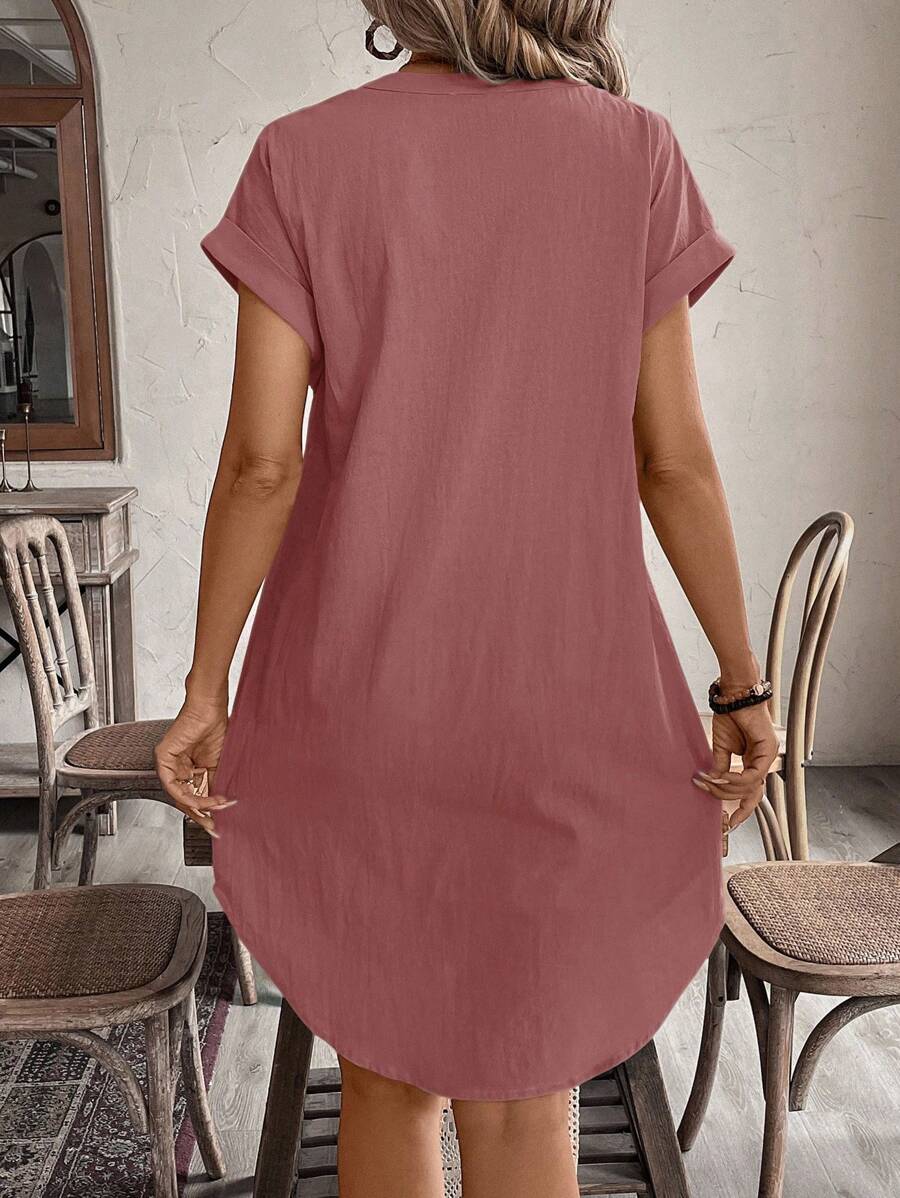 Curve vestido informal de talla grande para vacaciones con cuello en pico y botones frontales de unicolor
