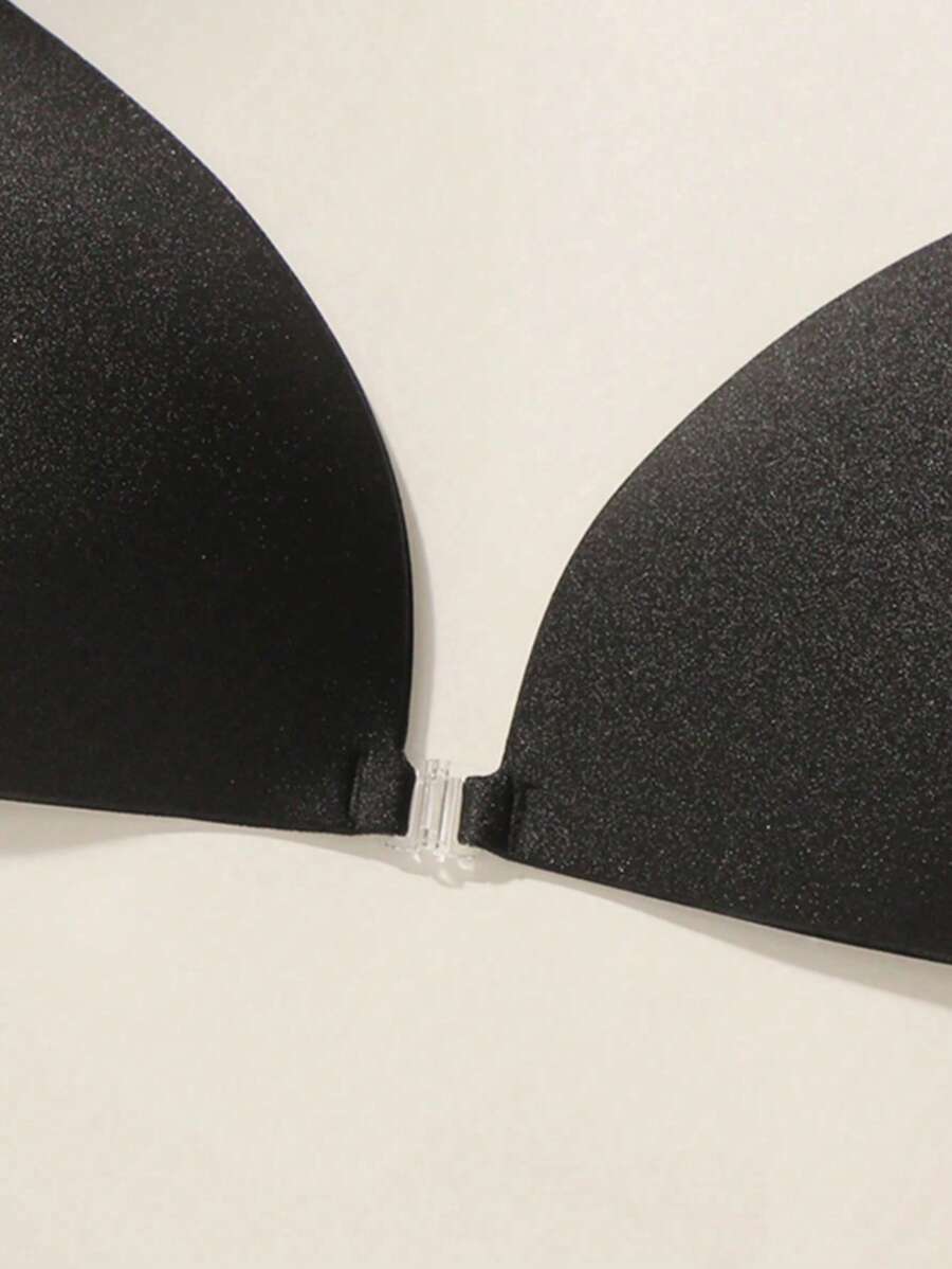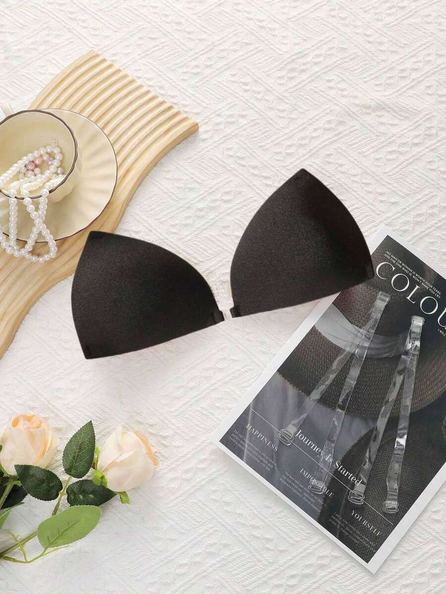 Brasieres negros reutilizables y autoadhesivos invisibles para mujeres, sosten con copa triangular de unicolor con efecto push-up, cubiertas de pezon de silicona sin espalda y sin tirantes, lenceria sexy accesorio con tirantes transparentes y