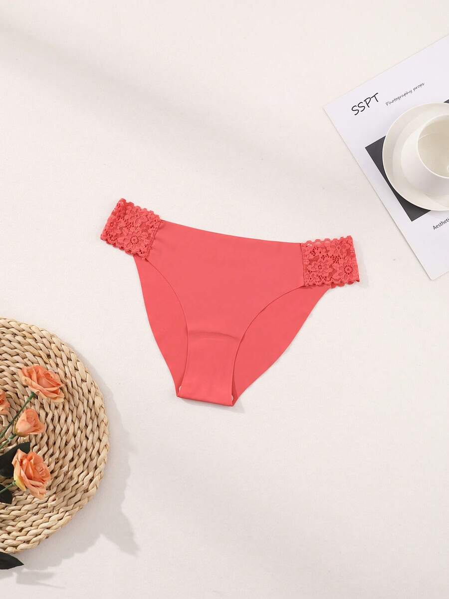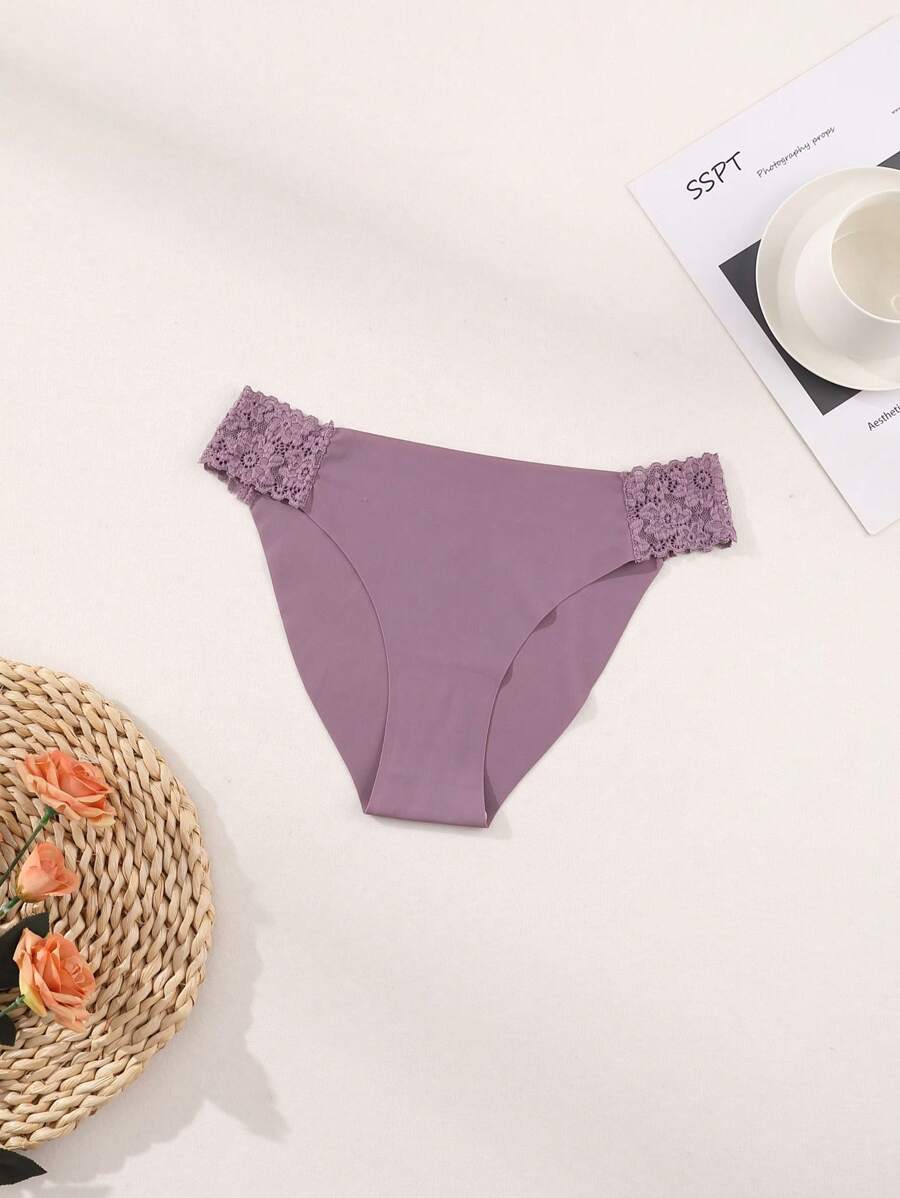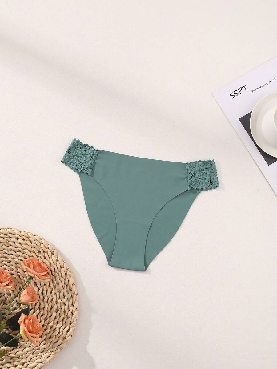 8 piezas de bragas comodas y sin costuras, con encaje y seda de leche, de unicolor, lenceria sexy y romantica para mujeres