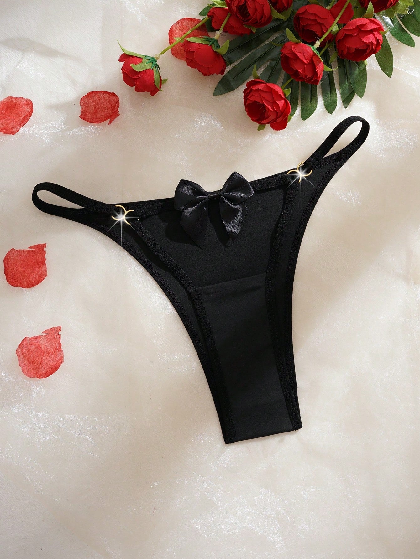 Bragas románticas francesas de mujer de cintura baja, con lazo negro y diseño hueco sexy