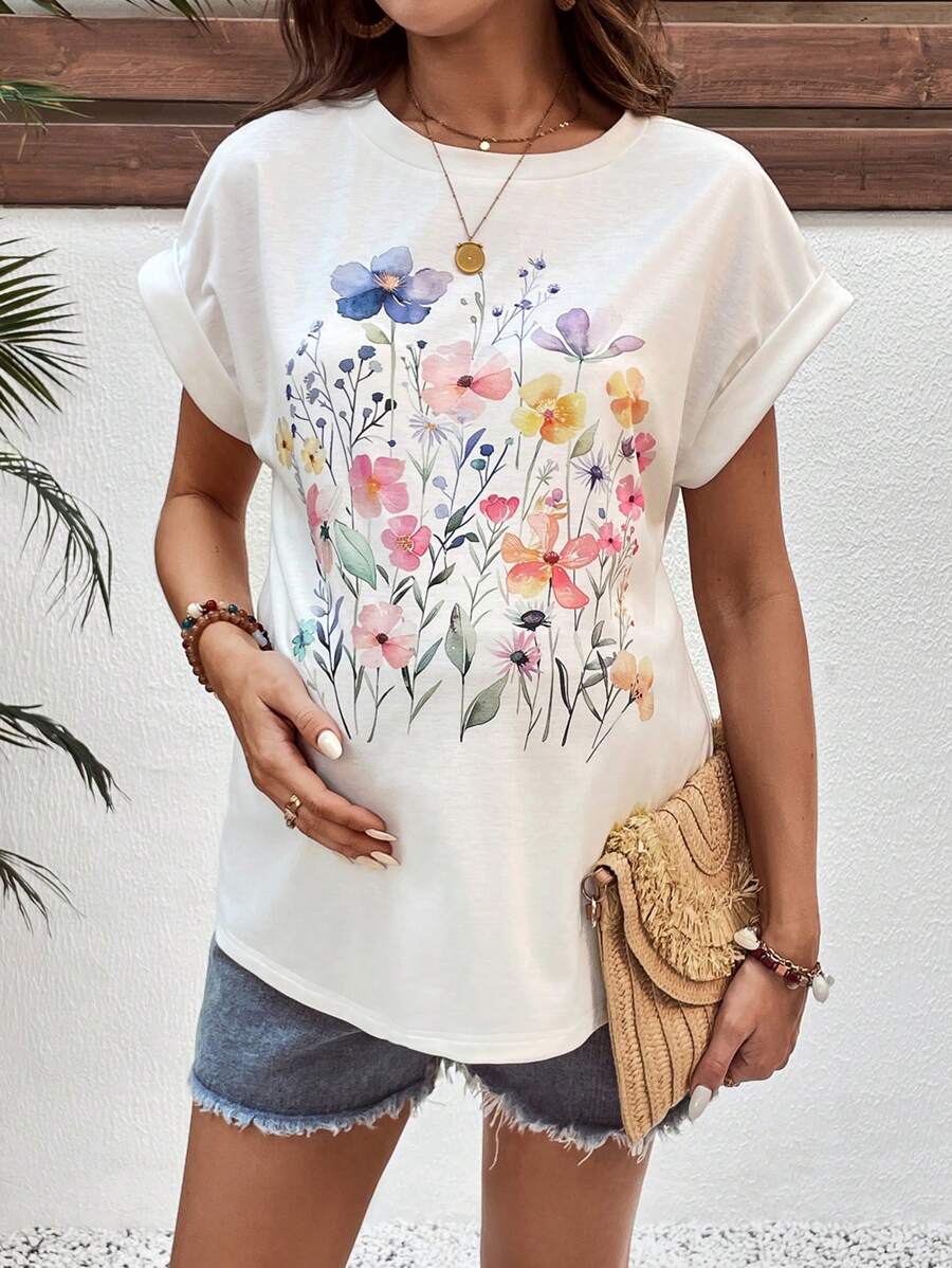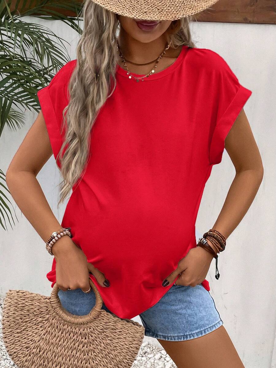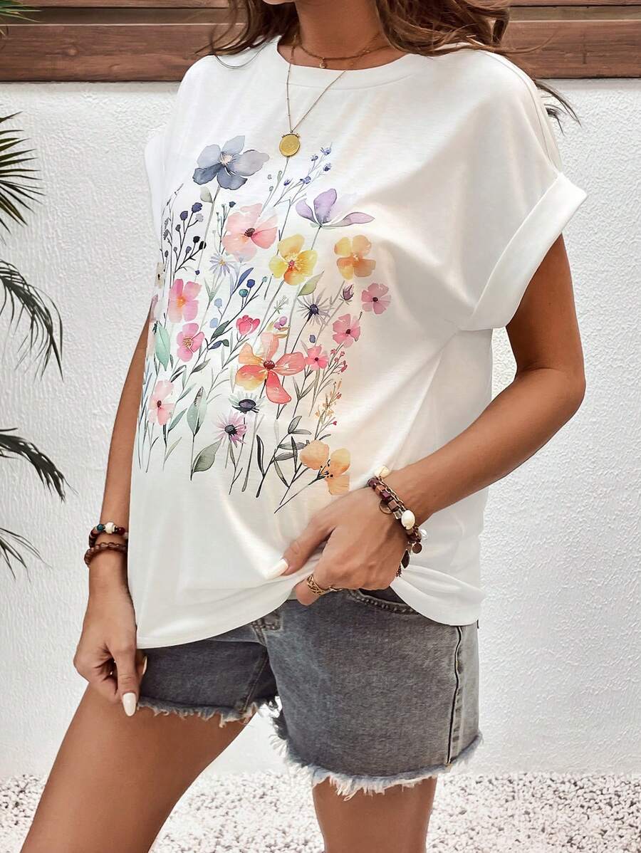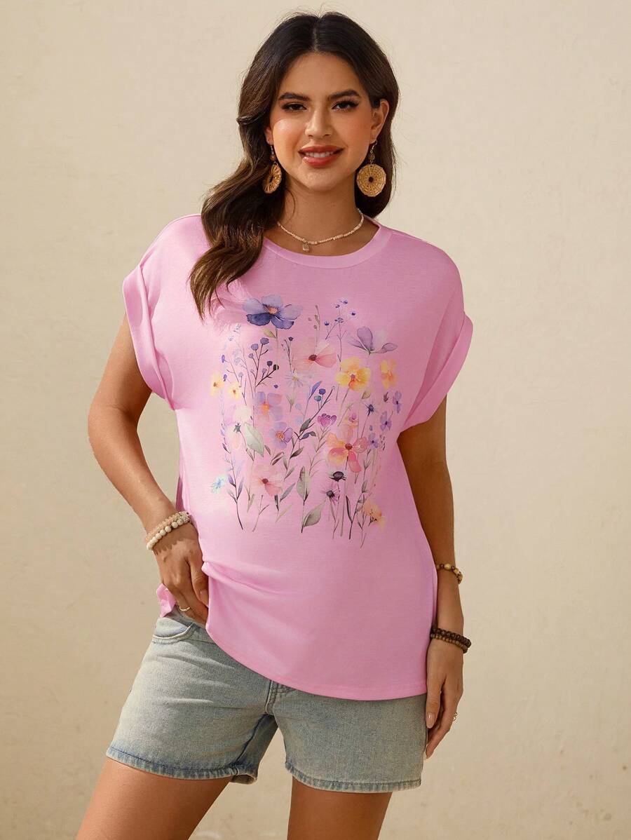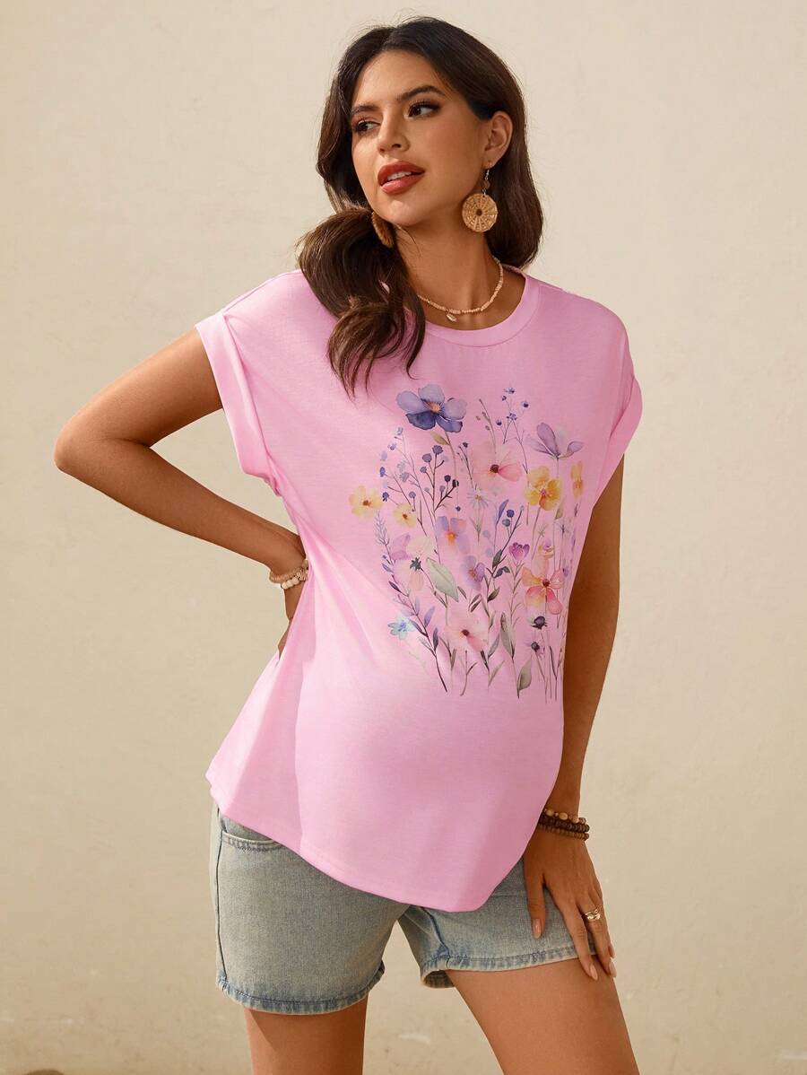 Camiseta casual de mujer embarazada de manga corta estilo murciélago con estampado floral