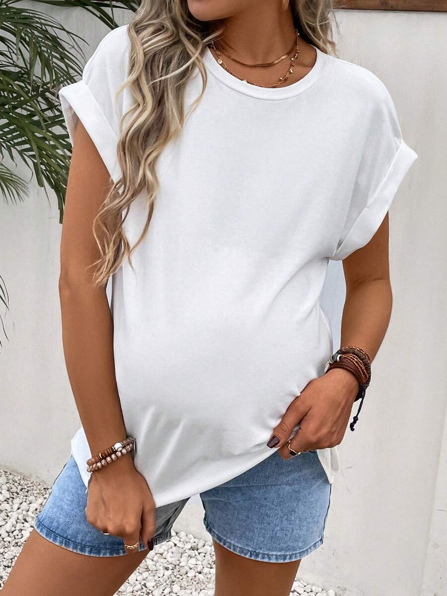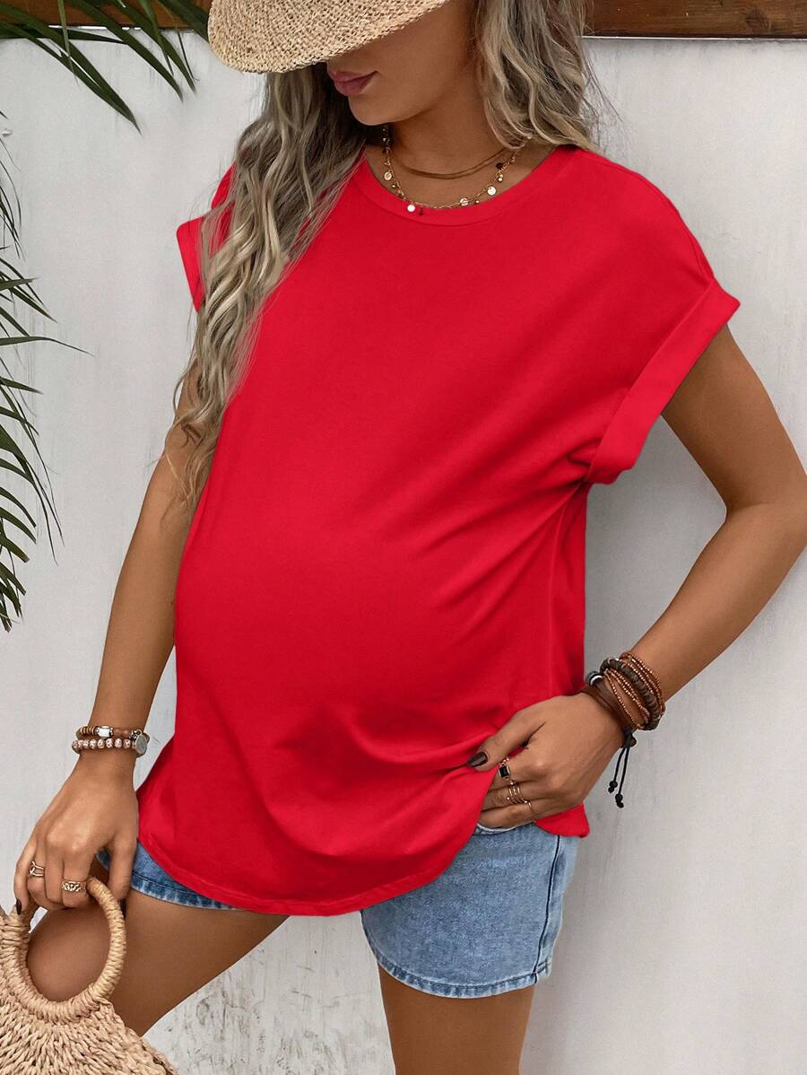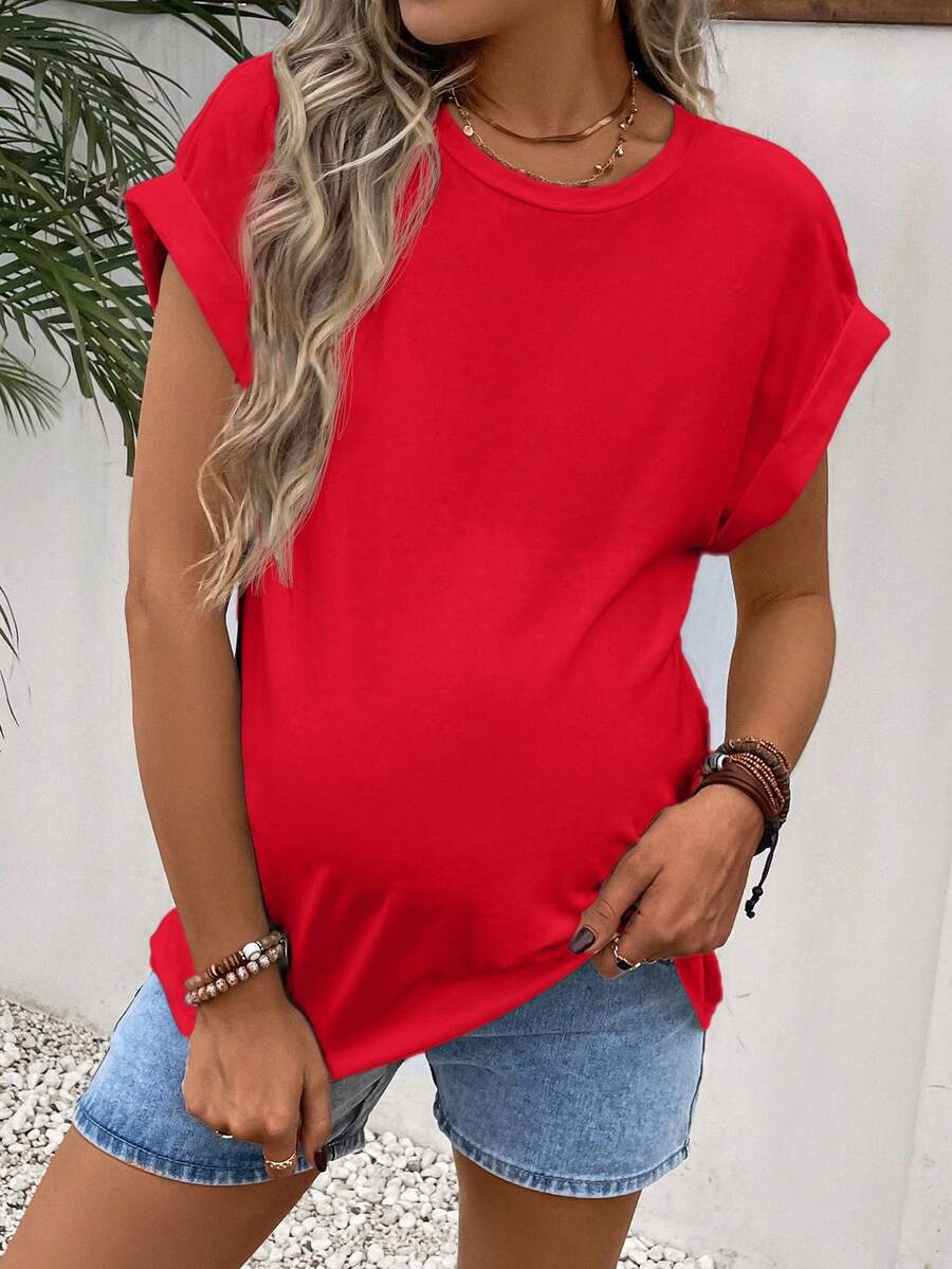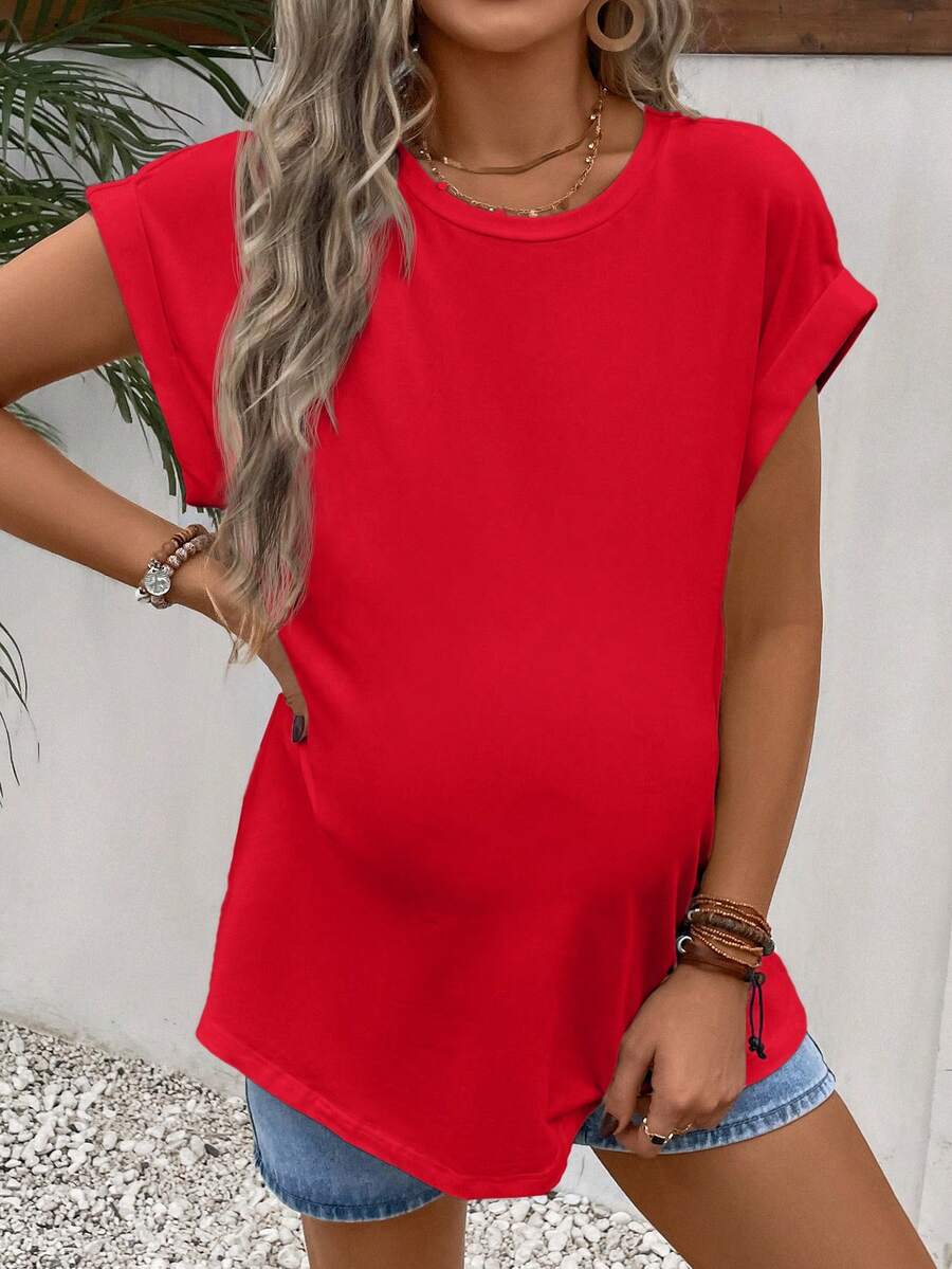 Camiseta casual de mujer embarazada de manga corta estilo murciélago con estampado floral