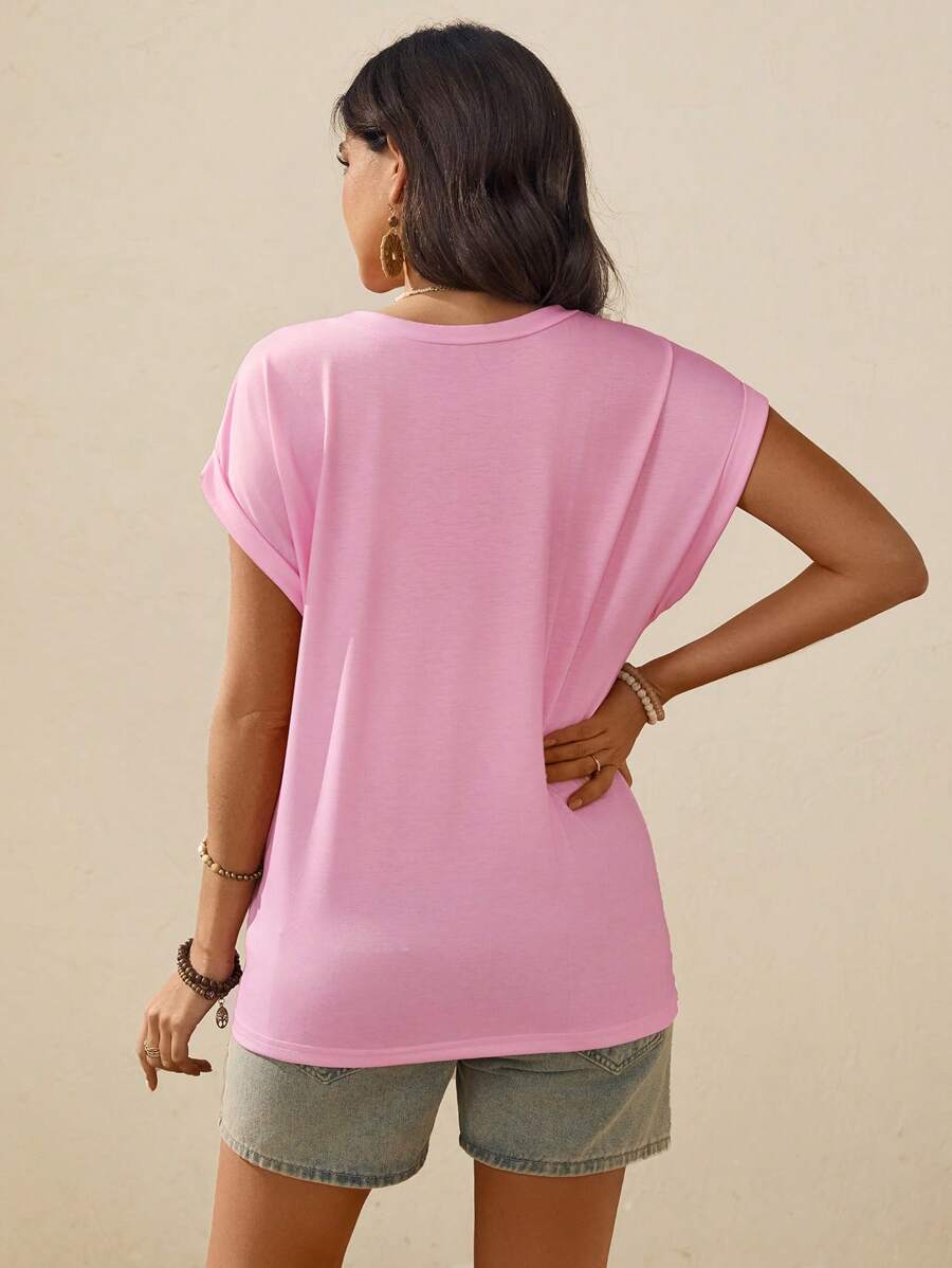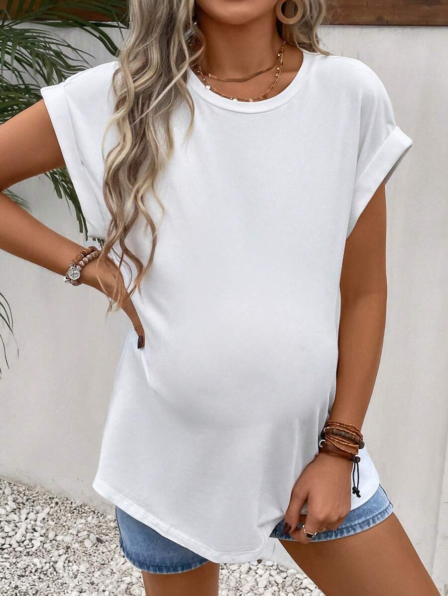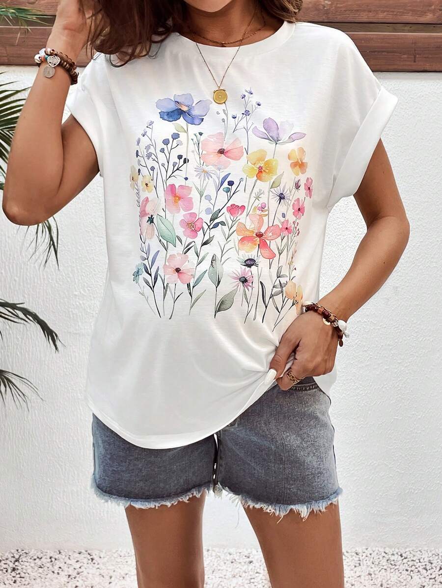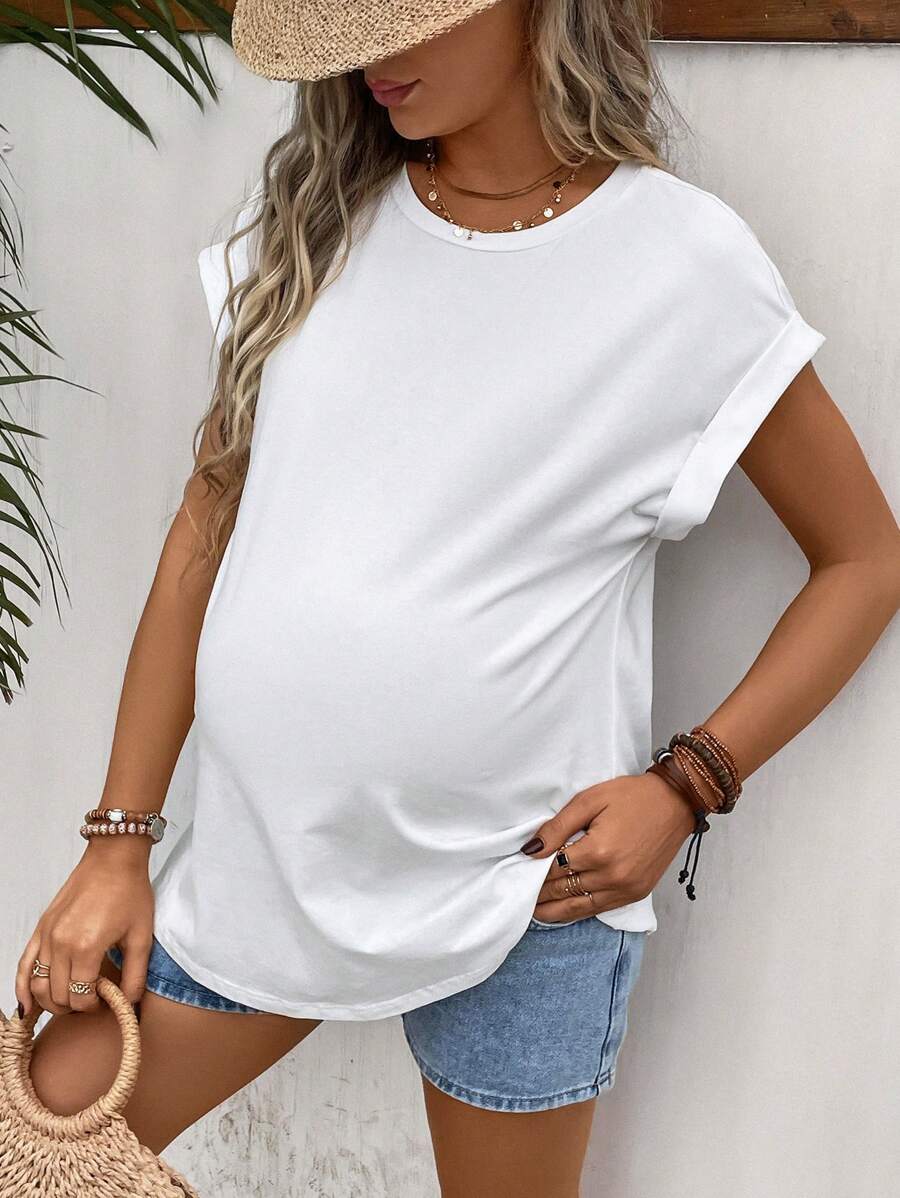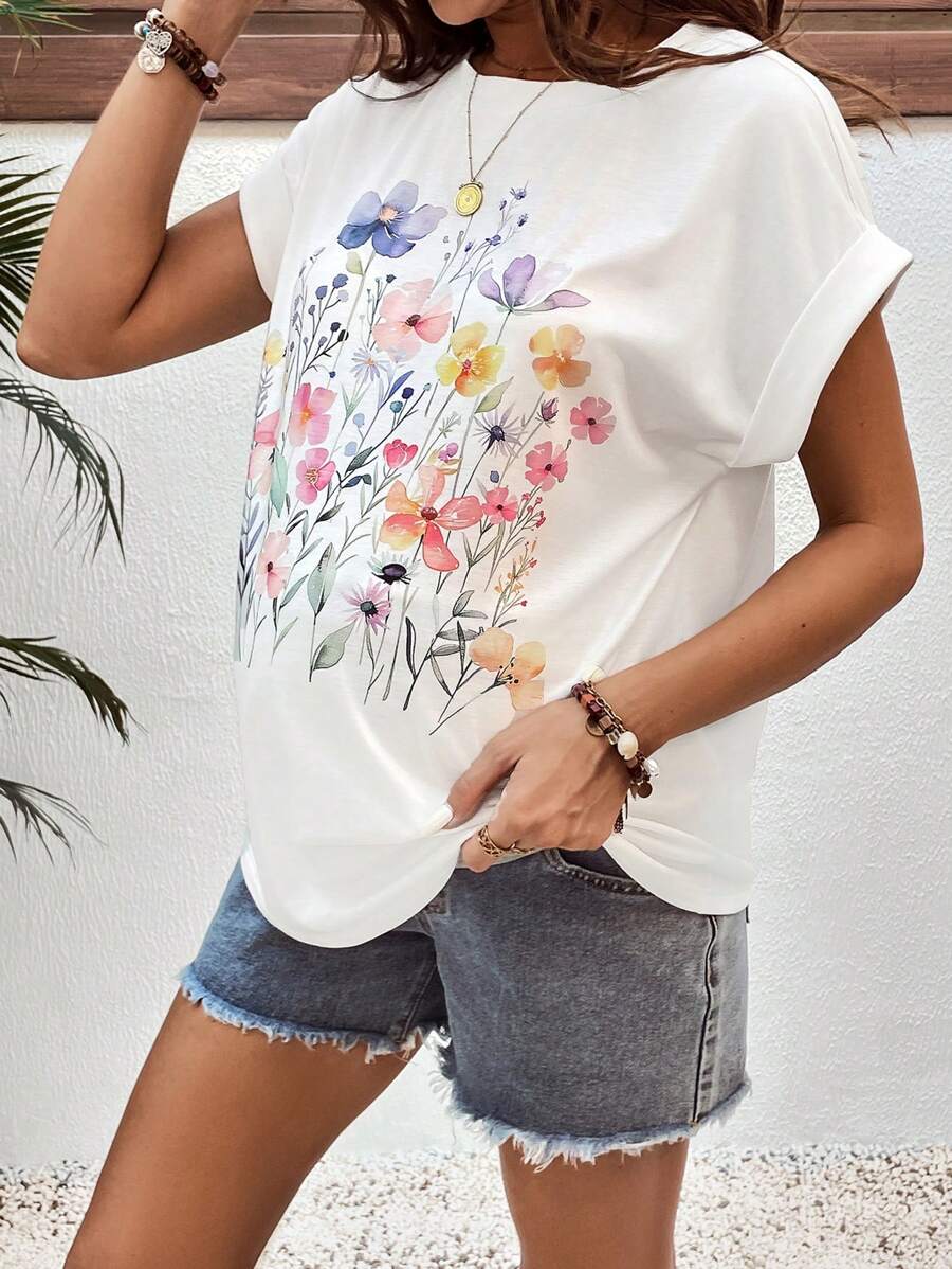 Camiseta casual de mujer embarazada de manga corta estilo murciélago con estampado floral